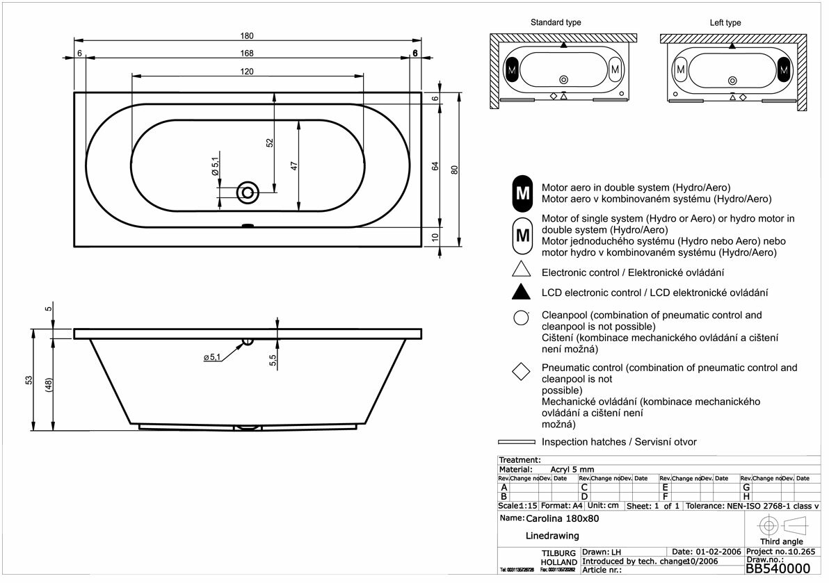 Акриловая ванна RIHO CAROLINA 170x80, B055001005 (BB5300500000000)