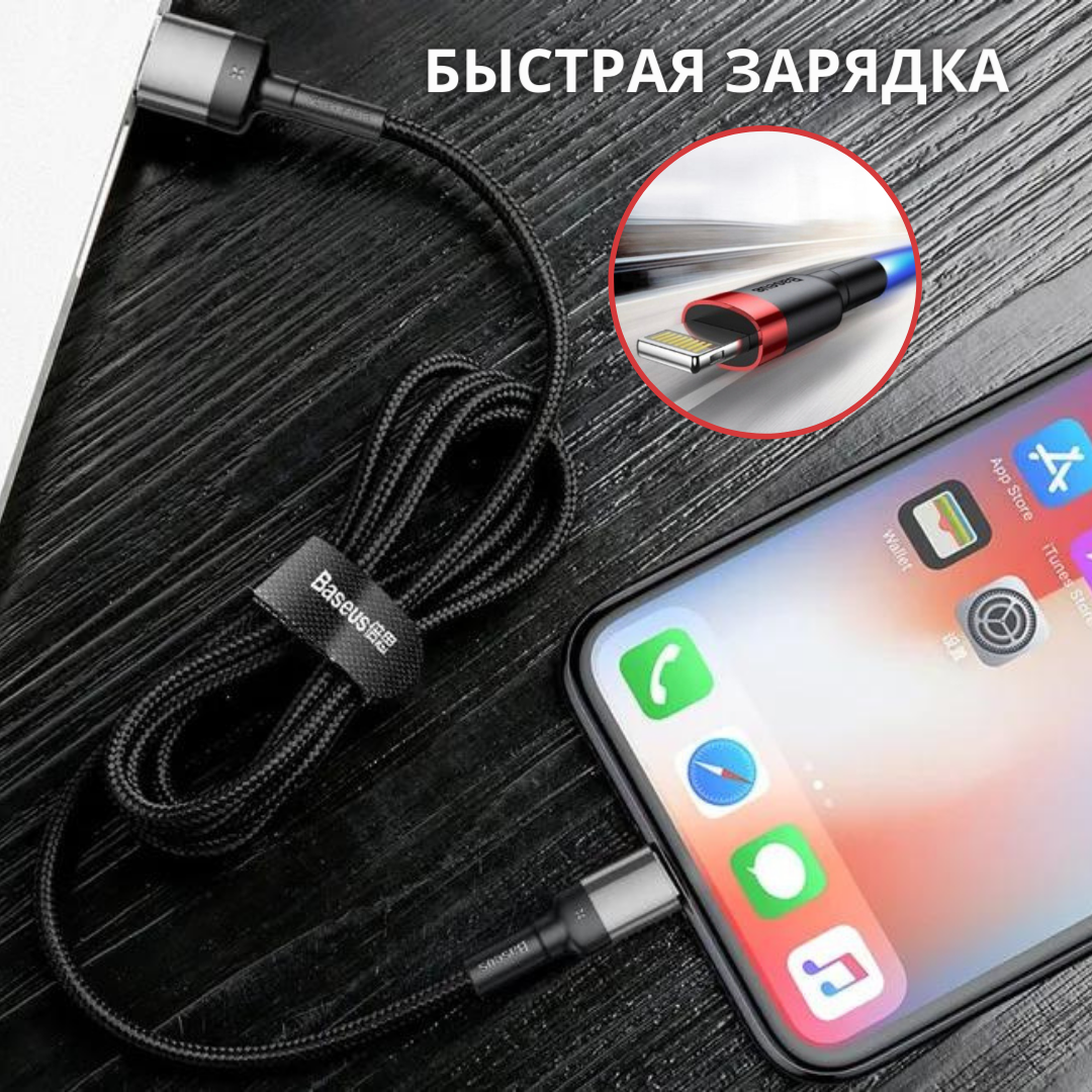 BASEUS CALKLFG91 CALKLF-G91_кабель iphone черный+красн круглый 1м 2.4А!\