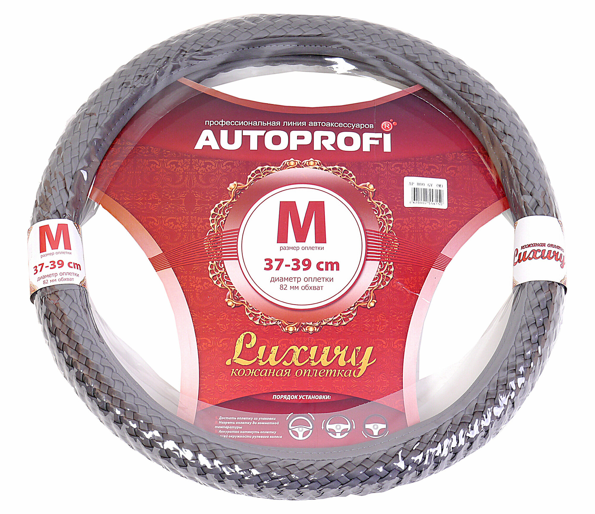 Оплетка на руль AUTOPROFI LUXURY с плетеными вставками, кожа, серый цвет, размер M (37-39см)