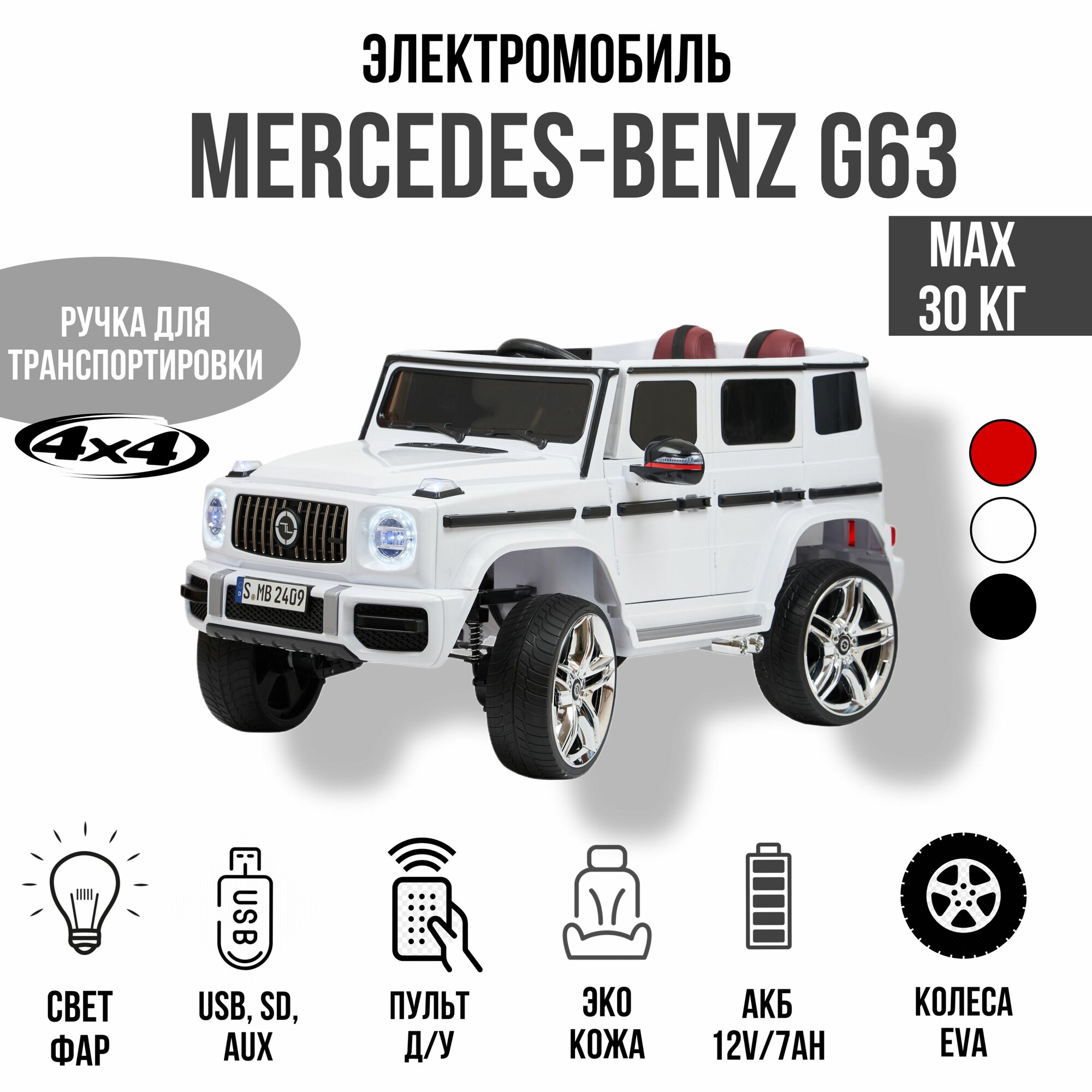 СохранитьДетский электромобиль Mercedes-Benz G63 (высокая дверь) со световыми и звуковыми эффектами, полный привод интересное: