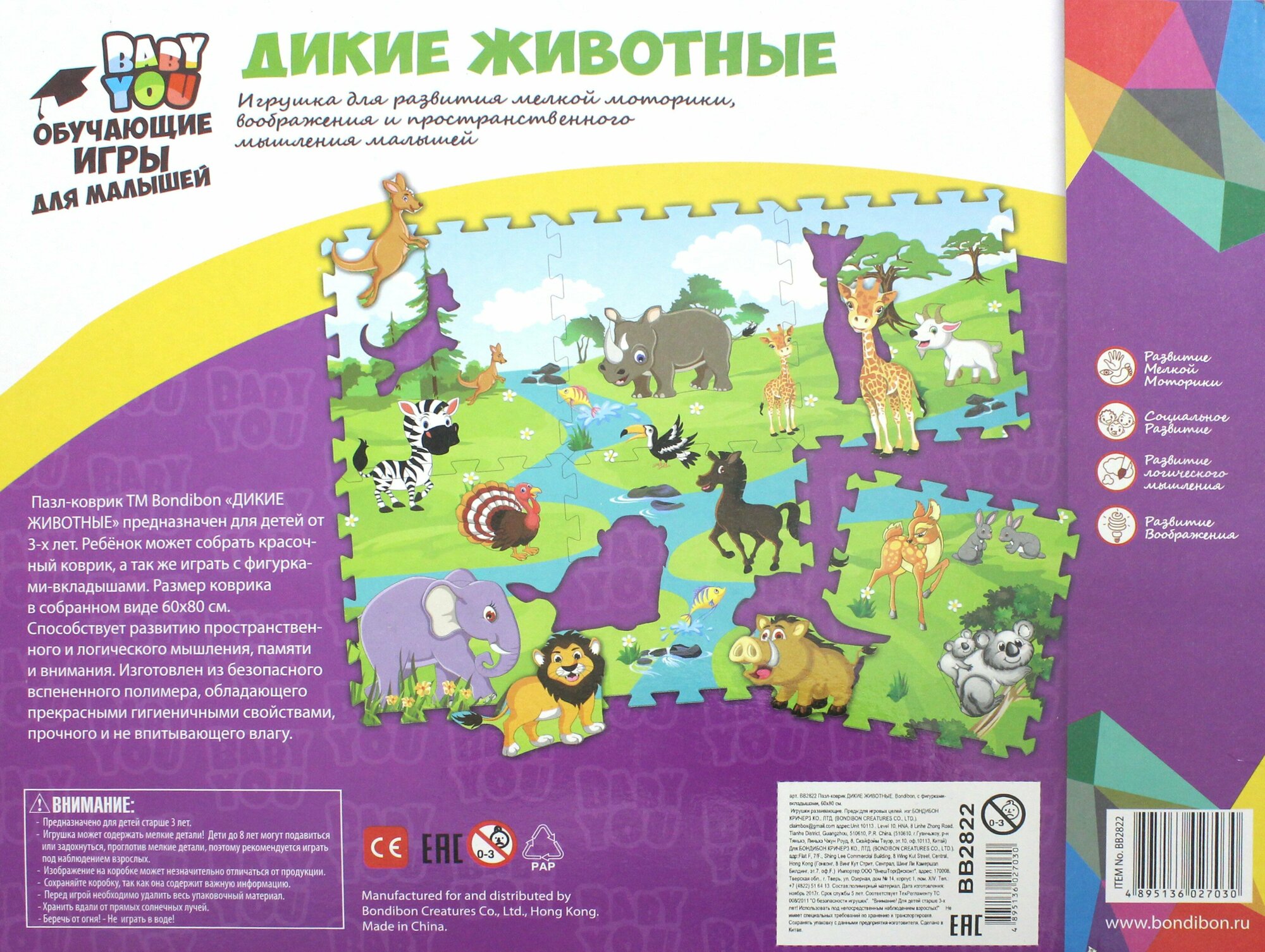 Ниже Вы можете прочитать отзывы на Bondibon Пазл-коврик Дикие животные с фигурками-вкладышами, ознакомится с подробными характеристиками, посмотреть интересные обзоры и фотографии на Bondibon Пазл-коврик Дикие животные с фигурками-вкладышами.