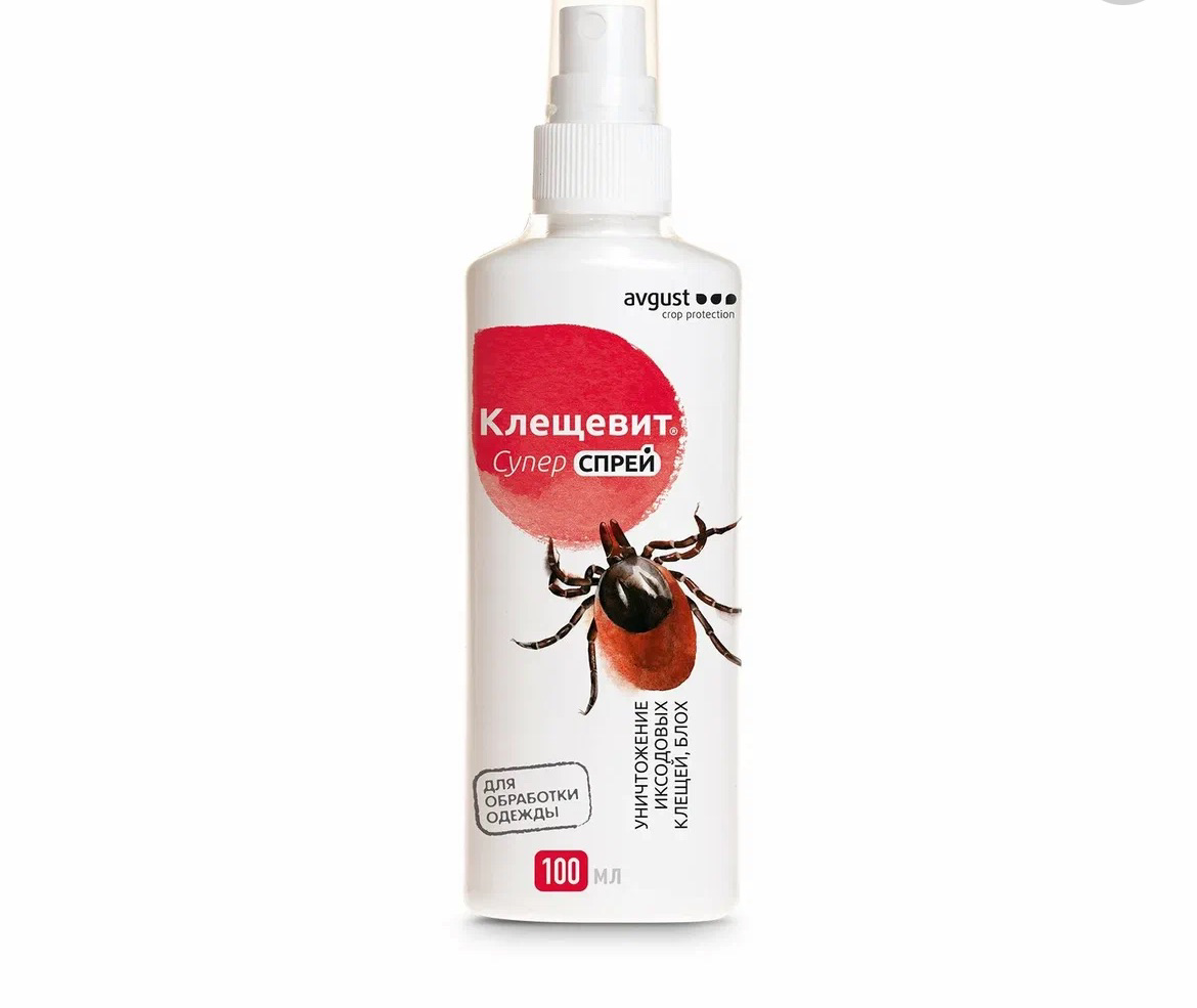 Спрей avgust Клещевит Супер для обработки одежды, 103 г, 100 мл, 15 ночей, белый