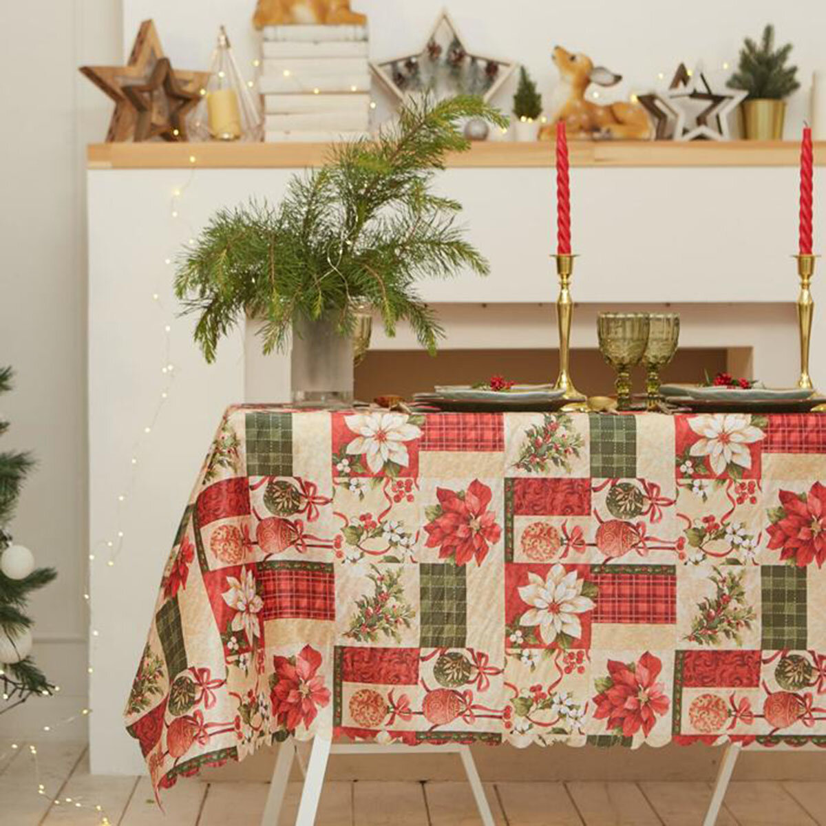 Скатерть новогодняя «Доляна» "Новогодняя мозаика"," 145*220 +/- 2 см, 100% п/э