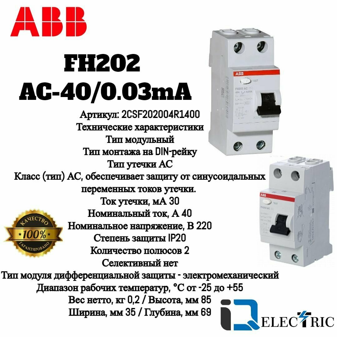 Выключатель дифференциального тока (УЗО) 2п 40А 30мА тип AC FH202 ABB 2CSF202004R1400, 1шт