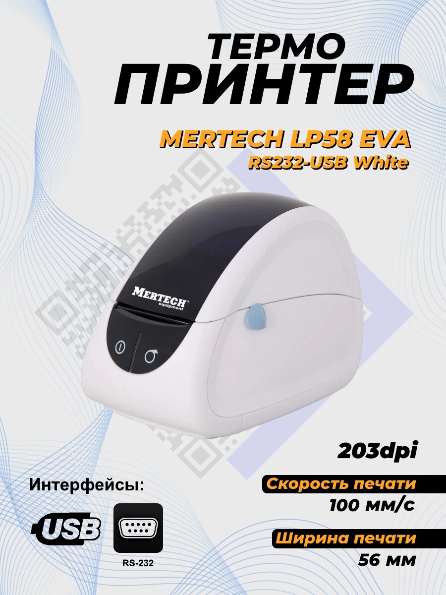Термопринтер этикеток Mercury MPRINT LP58 EVA, RS232, USB, белый
