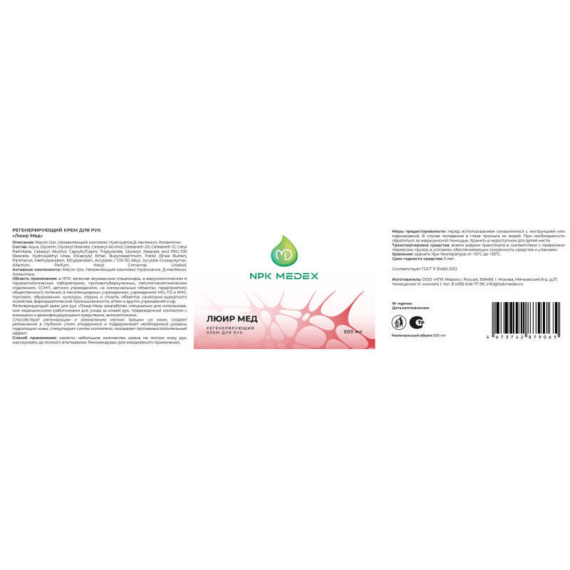 НПК медэкс Крем для рук Люир Мед регенерирующий, 500 мл