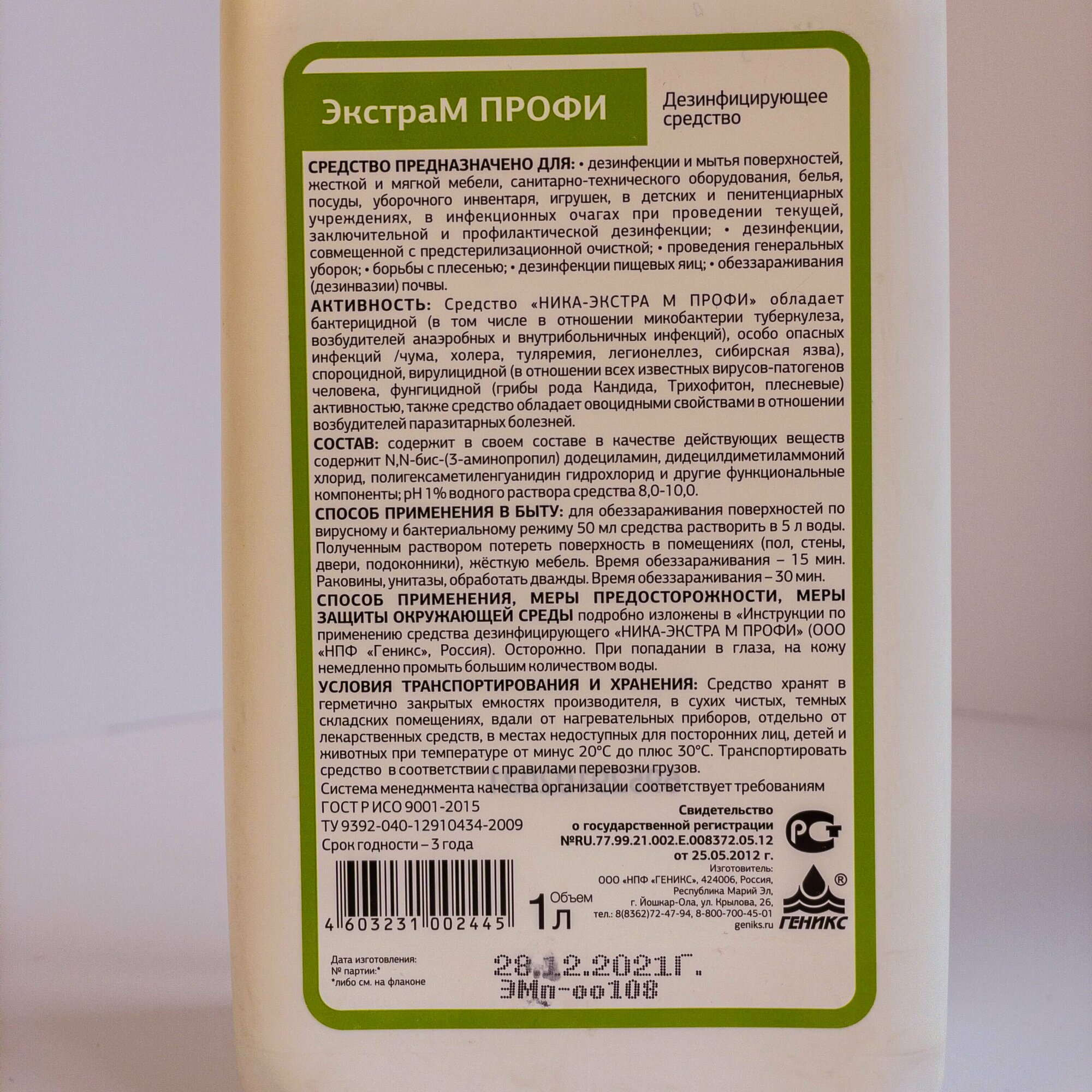 Дезинфицирующее средство Ника "Экстра М Профи", 1л Геникс