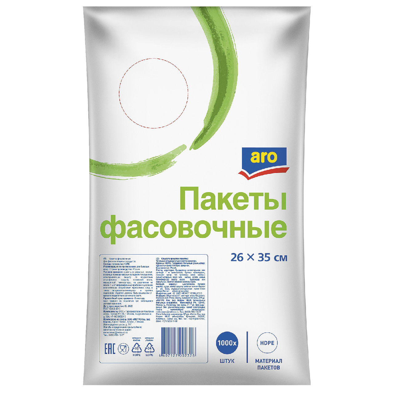 Купить aro Пакеты фасовочные 26 х 35см 8мкрн 1000шт