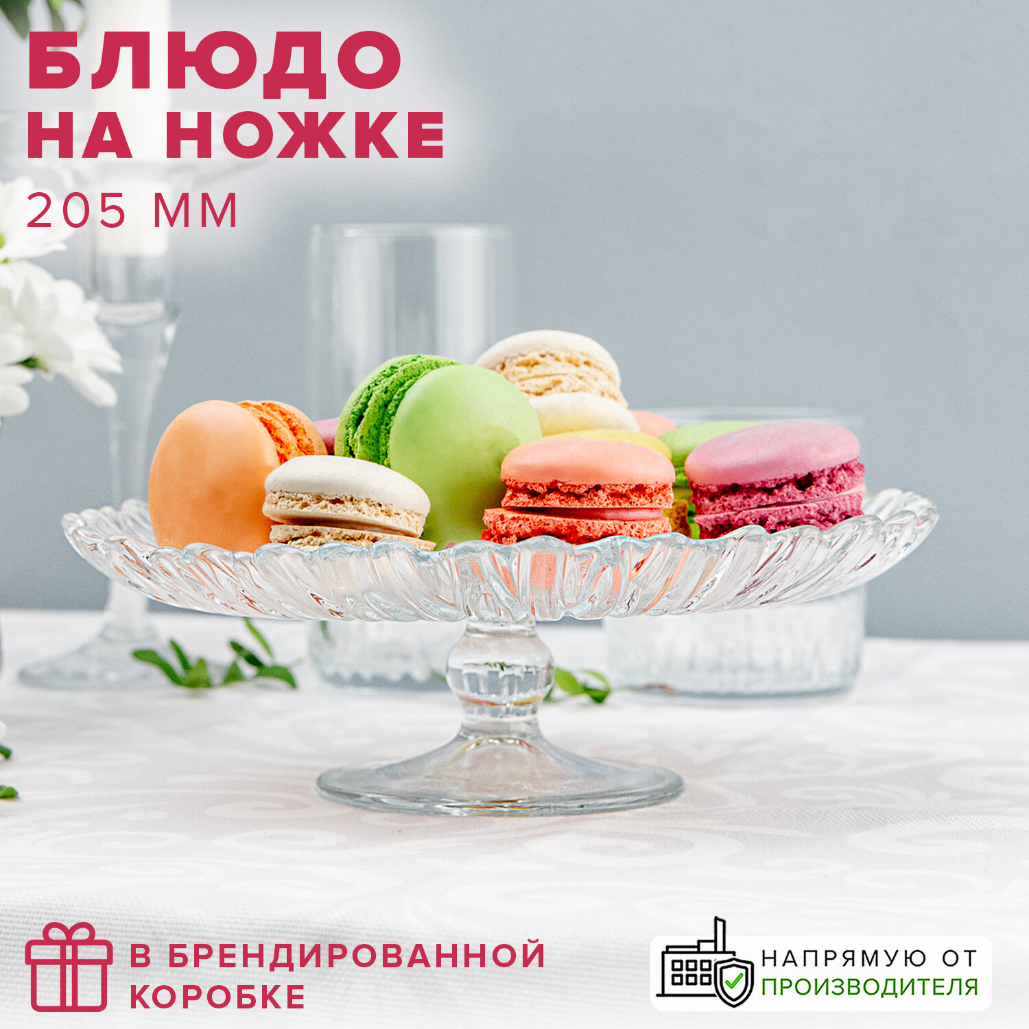 Блюдо на ножке Aurora, d 20,5 см, стеклянные сервировочные блюда, стеклянная посуда