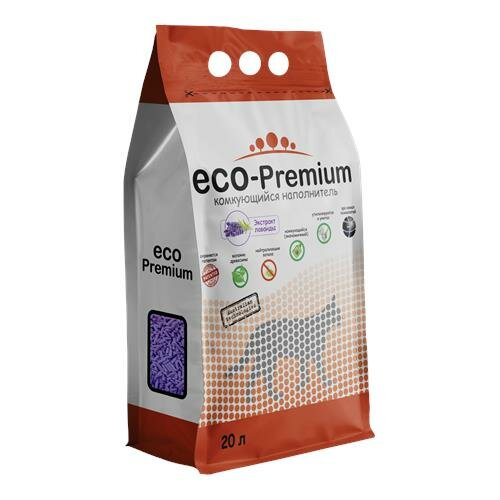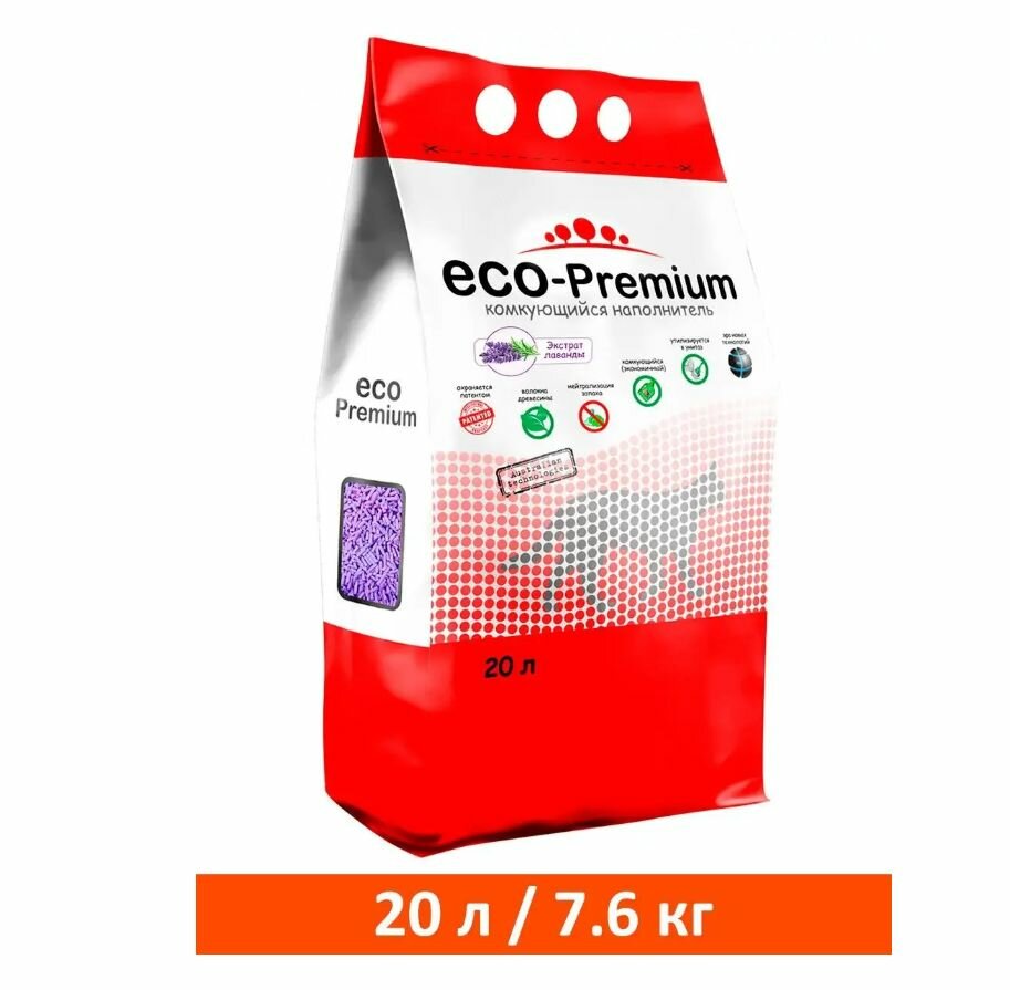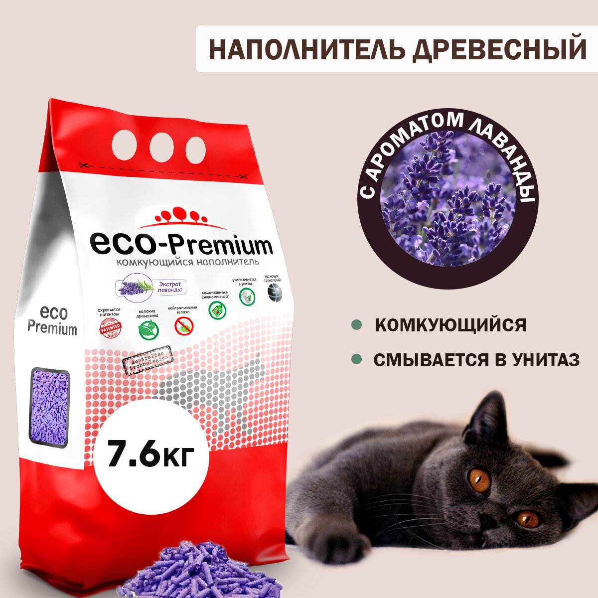 Наполнитель для кошачьего туалета комкующийся древесный с запахом лаванды ECO-Premium, фиолетовый 7,6 кг, 20 л