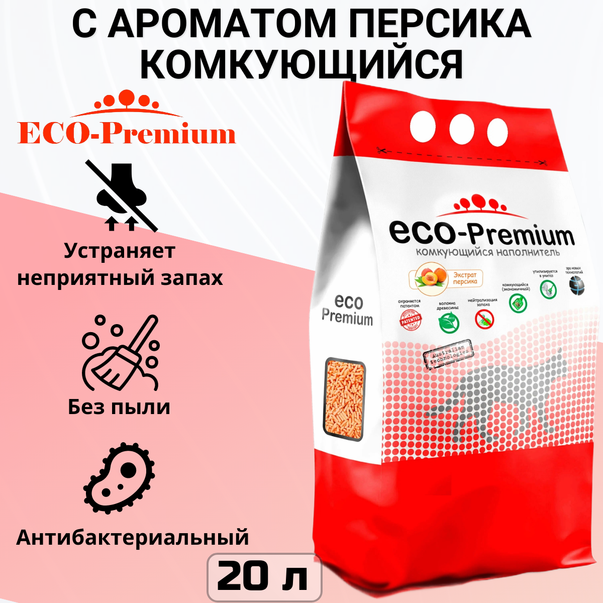 Наполнитель Эко Премиум для кошачьего туалета Древесный Комкующийся с ароматом Персика 20 л (7,6 кг)
