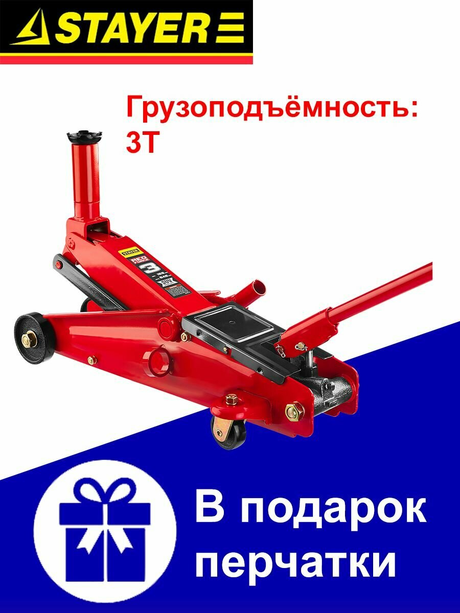 Домкрат STAYER 43157-3 гидравлический подкатной red force для внедорожников 3т 155-545мм