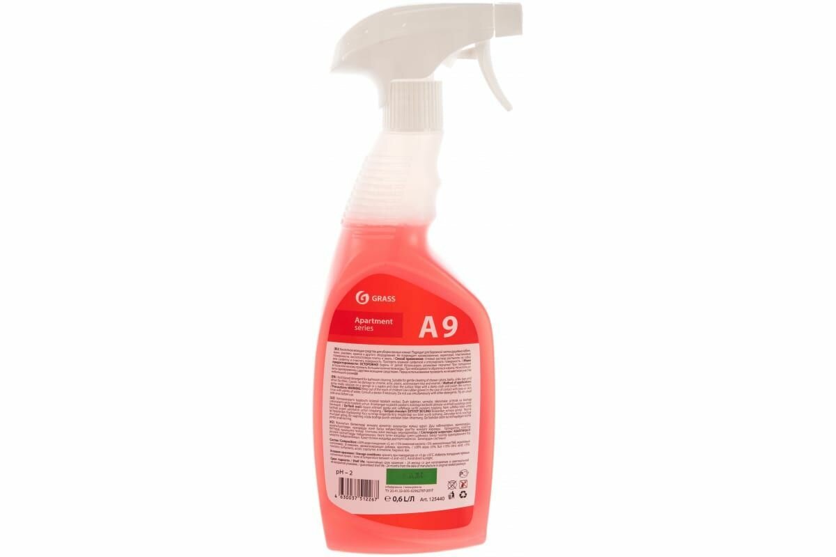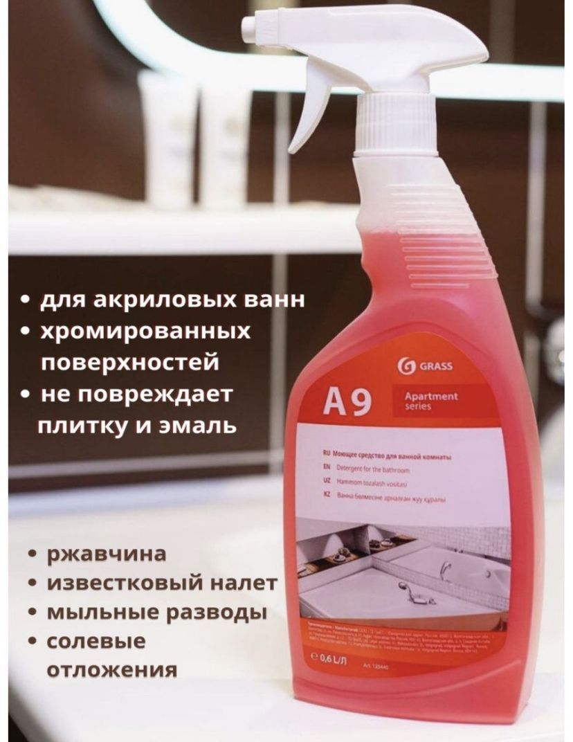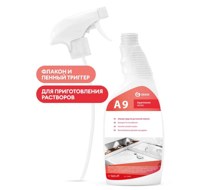 Средство моющее Grass Apartament series А9 кислотное для уборки ванных комнат триггер 0,6 л
