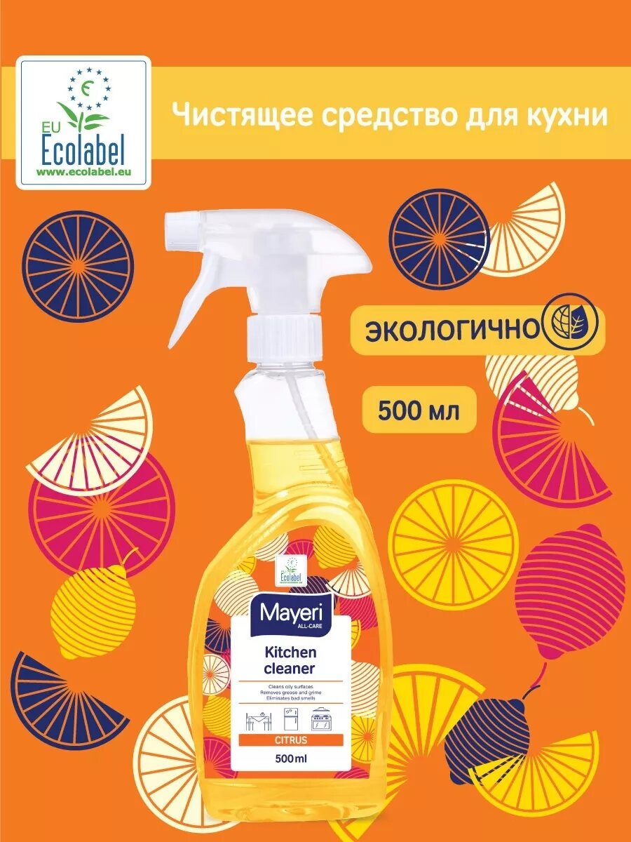 Чистящее средство для кухни Mayeri All-Care, спрей жироудалитель, эко 500 мл