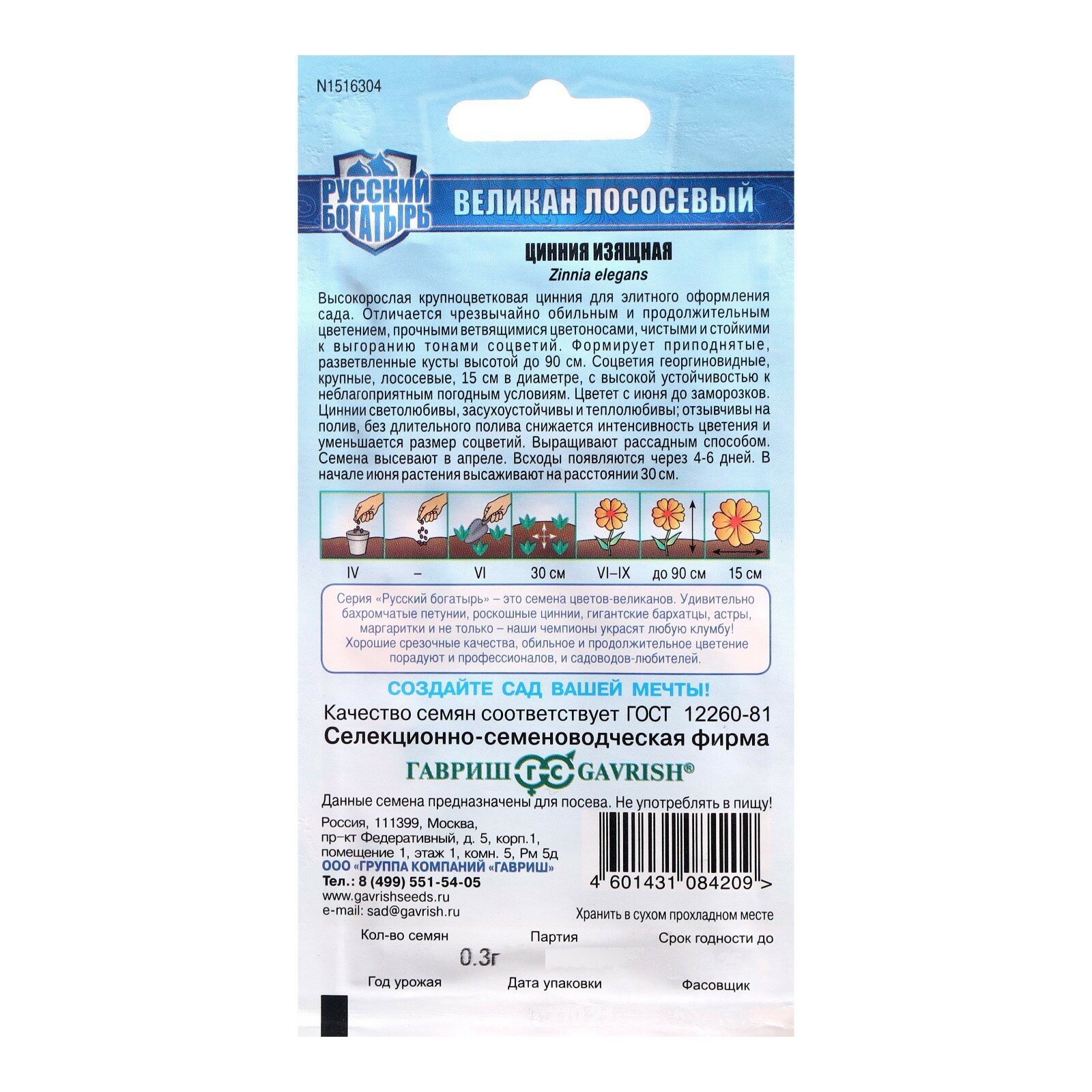 Гавриш Цинния Великан лососевый 0,3 г серия Русский богатырь 1999949480