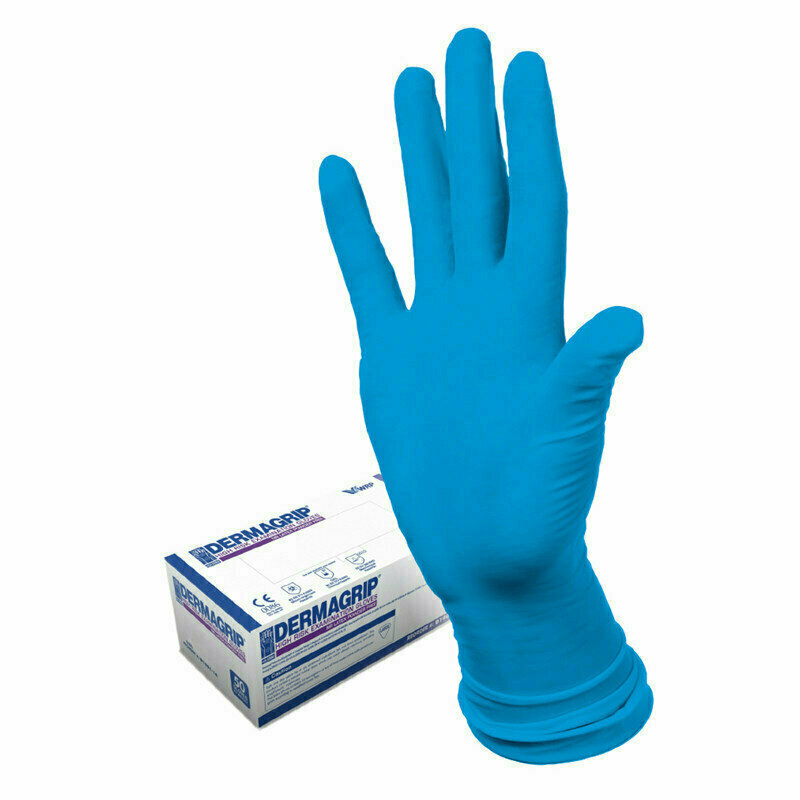 DERMAGRIP Перчатки латексные неопудренные High Risk, смотровые, нестерильные, текстурированные, размер XL, 35 гр, 50 шт/уп (25 пар), цвет голубой