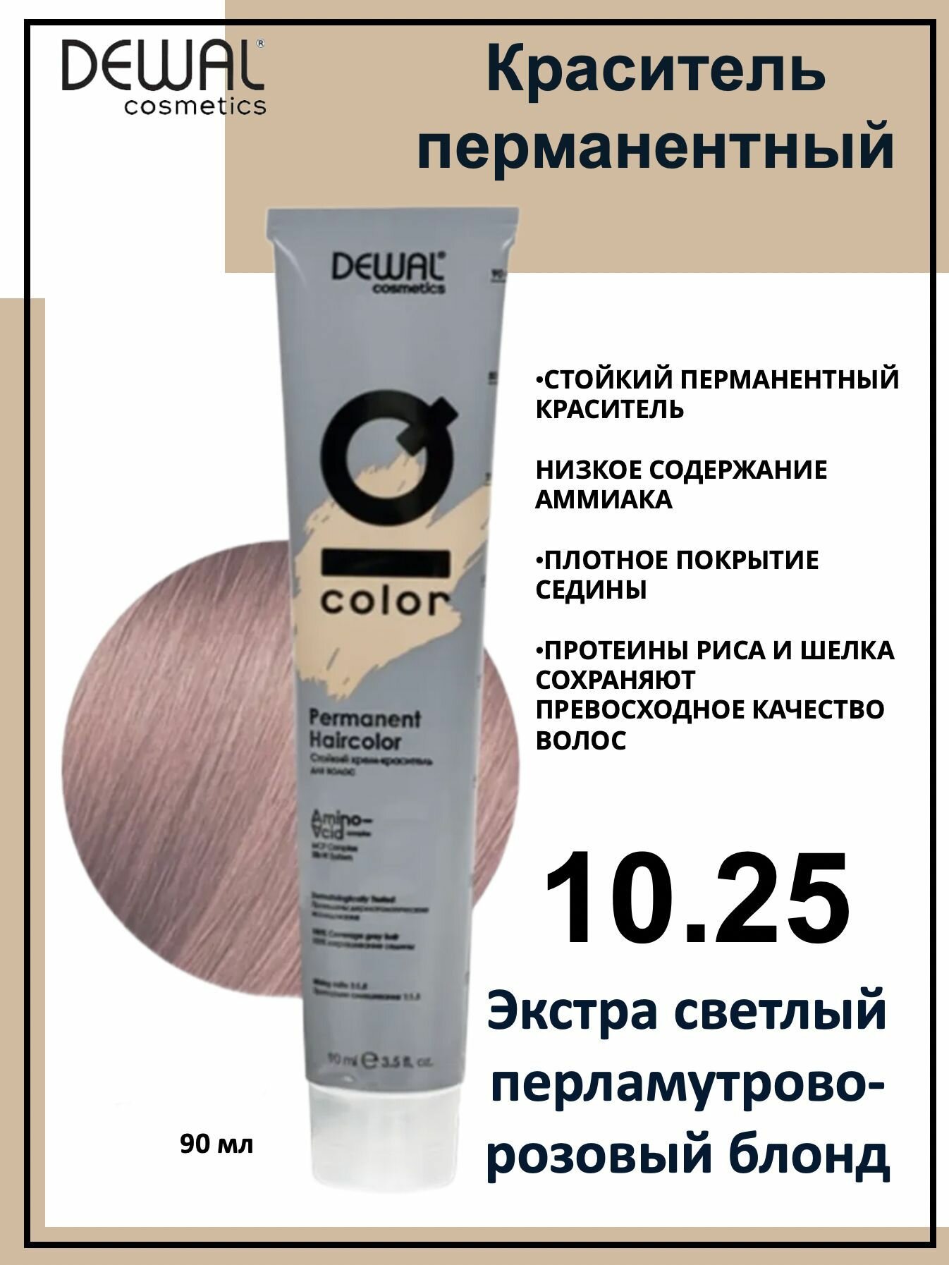 Купить Dewal Cosmetics Крем-краска для волос IQ Color 10/25 экстра светлый перламутрово-розовый блонд, 90мл