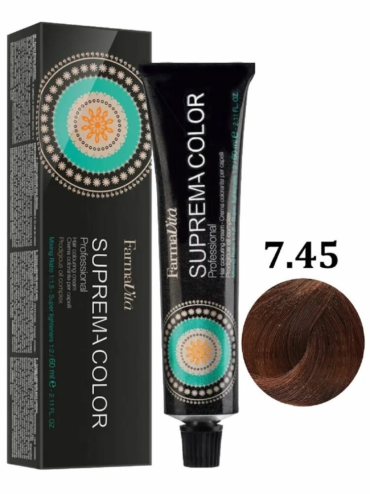 FARMAVITA Крем-краска для окрашивания волос оттенок 7.45 блондин медный (красное дерево) SUPREMA COLOR 60 мл, идентичен Life Color Plus