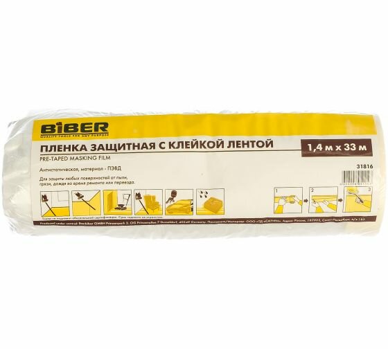Biber Пленка защитная с клейкой лентой 1,4x33м 31816 тов-150900 .