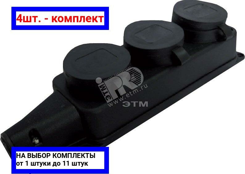 Купить Колодка UNIVersal тройная однофазная с заглушками с/з каучук 16А 250В IP44 (еврослот) | код. 602230 | Универсал (4шт.в упак.)