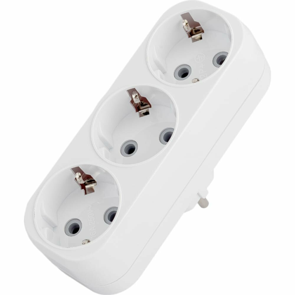 EKF Разветвитель (тройник) 3 роз. 16А 250V плоский, земля, белый ARP16-3