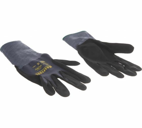 Перчатки с покрытием из вспененного нитрила KRAFTOOL эластичные, для точных работ, размер L