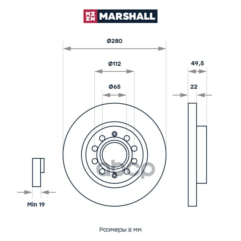 Тормозной диск передний Marshall M2000421 280x22 для Skoda Octavia, Volkswagen Golf, Volkswagen Jetta