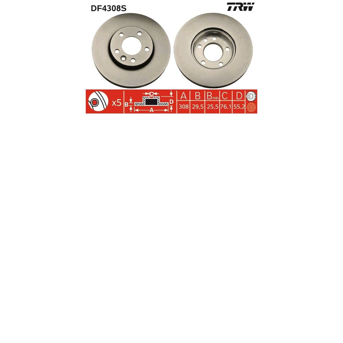 TRW DF4308S Торм.диск пер.вент.[308x30] 5 отв. 1шт