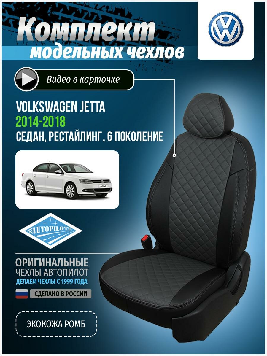 Купить Чехлы для Volkswagen Jetta 6 рестайлинг 2014-2018 Автопилот Темно-Серый Экокожа с ромбом vo-as854-wjlvi-chets-r