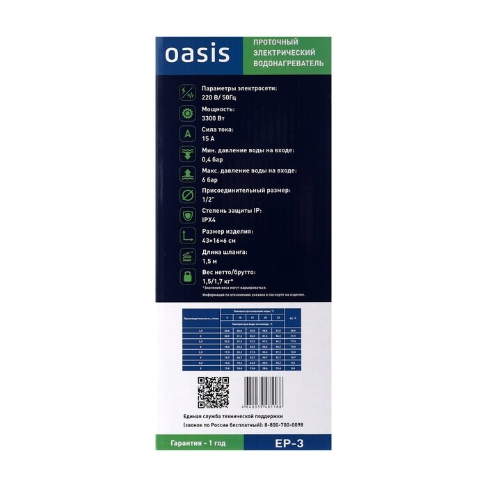 Ниже Вы можете прочитать отзывы на Водонагреватель OASIS EP-3, проточный, 3.3 кВт, белый, ознакомится с подробными характеристиками, посмотреть интересные обзоры и фотографии на Водонагреватель OASIS EP-3, проточный, 3.3 кВт, белый.