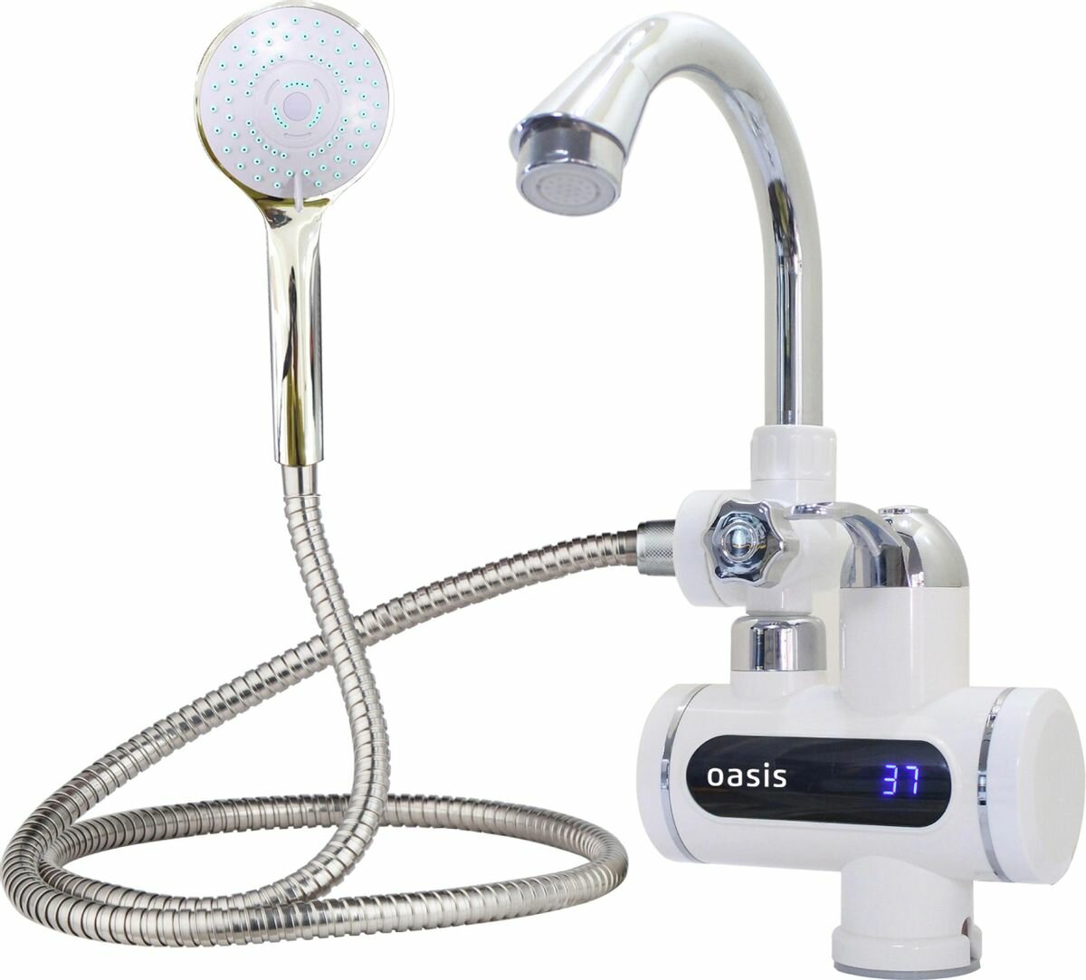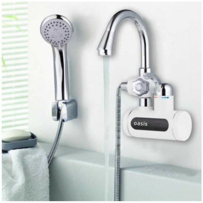 Проточный электрический водонагреватель Oasis EP-3, душ+кран, белый/серебристый