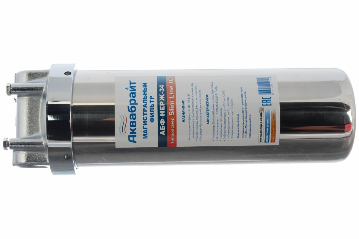 Магистральный фильтр Аквабрайт АБФ-НЕРЖ-34, Slim Line 10", 1/2"