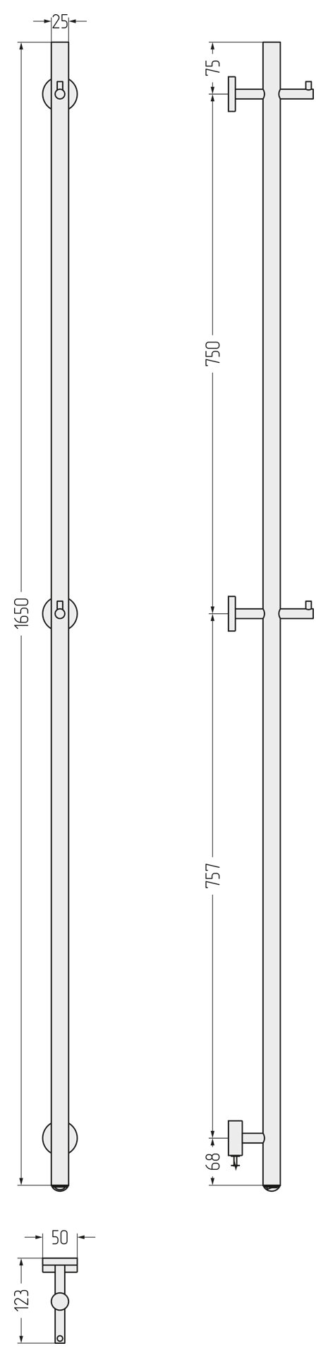 Полотенцесушитель электрический вертикальный Сунержа Аскет 1650х50 мм