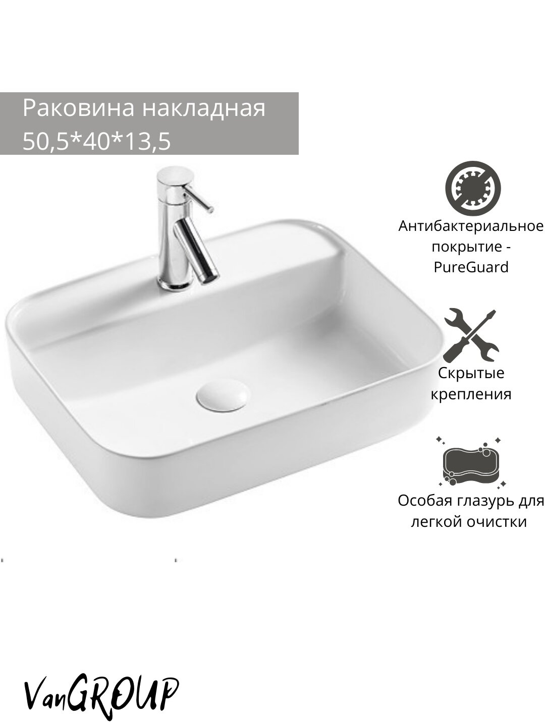 | Плюсы: | Раковина хорошая, устанавливал сам, просто посадил на герметик. Раковина обработана специальными слоями, которые защищают не только от брызг и подтеков, но и от накопления бактерий. В целом, после 6 мес использования довольны. |