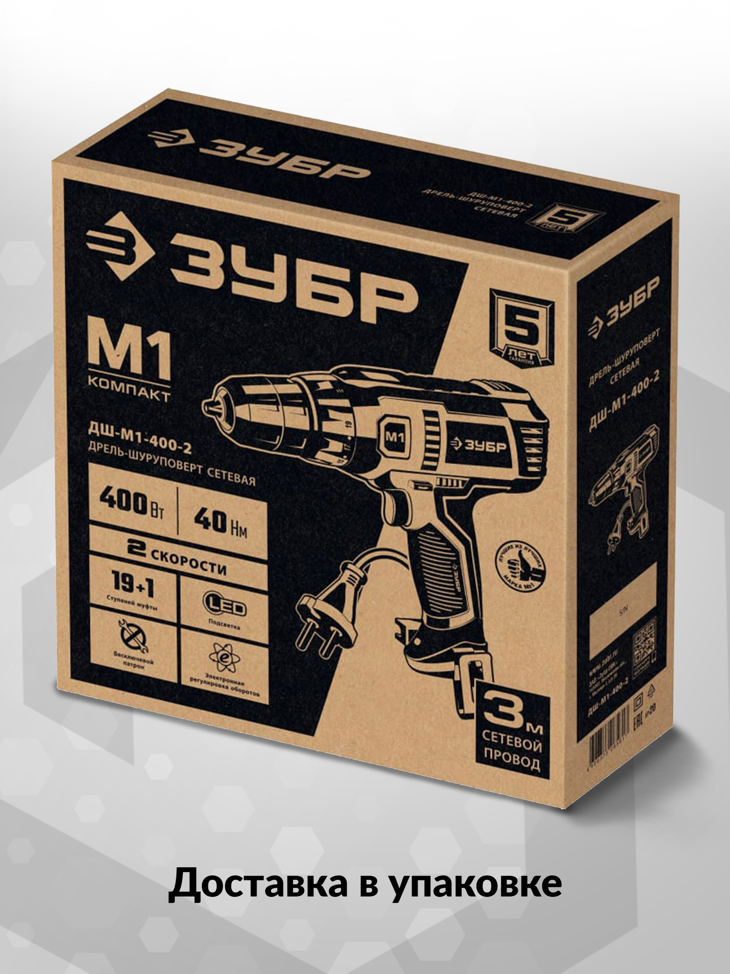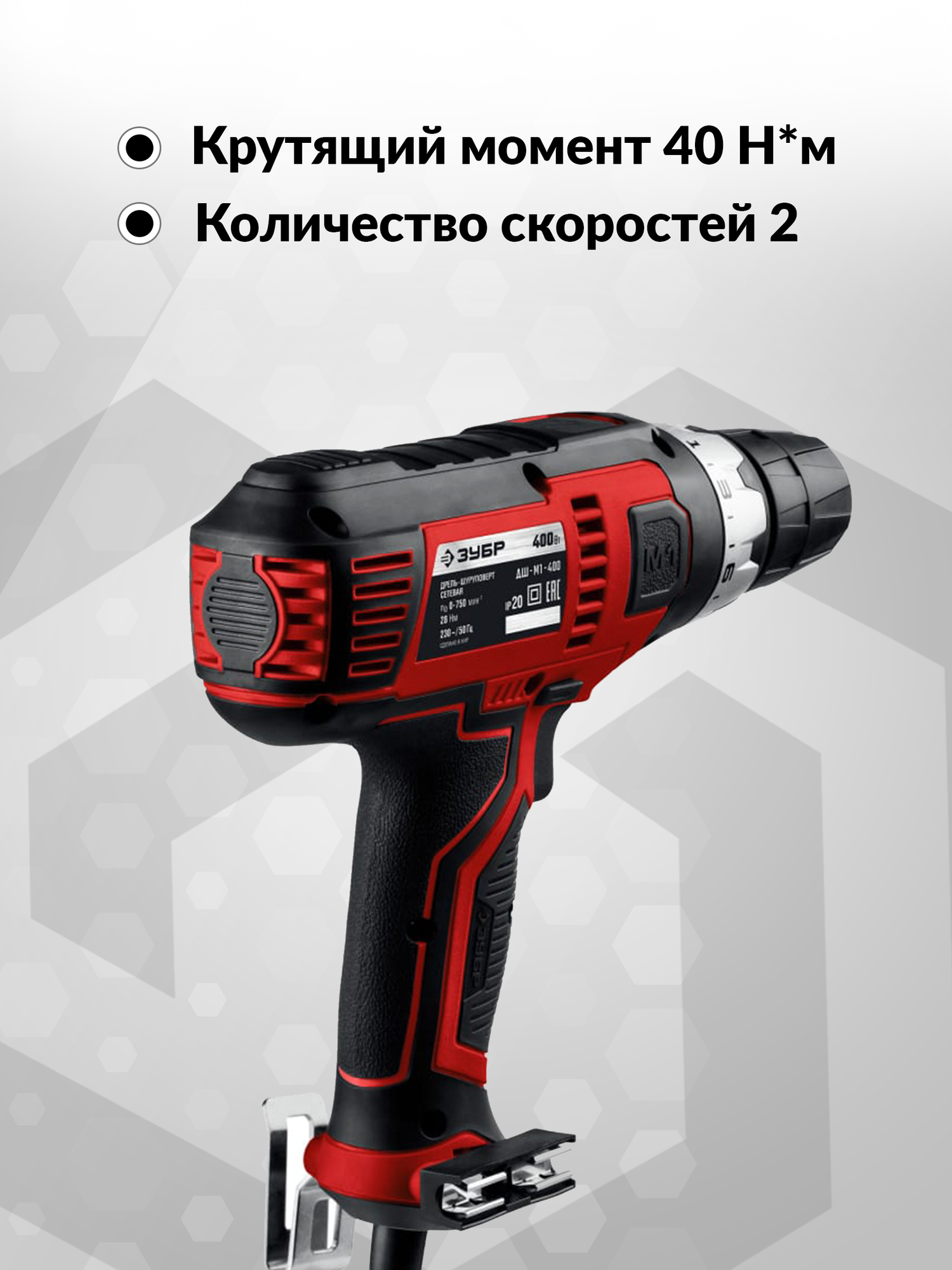 ЗУБР 400 Вт, 40 Н·м, сетевая дрель-шуруповерт (ДШ-М1-400-2)