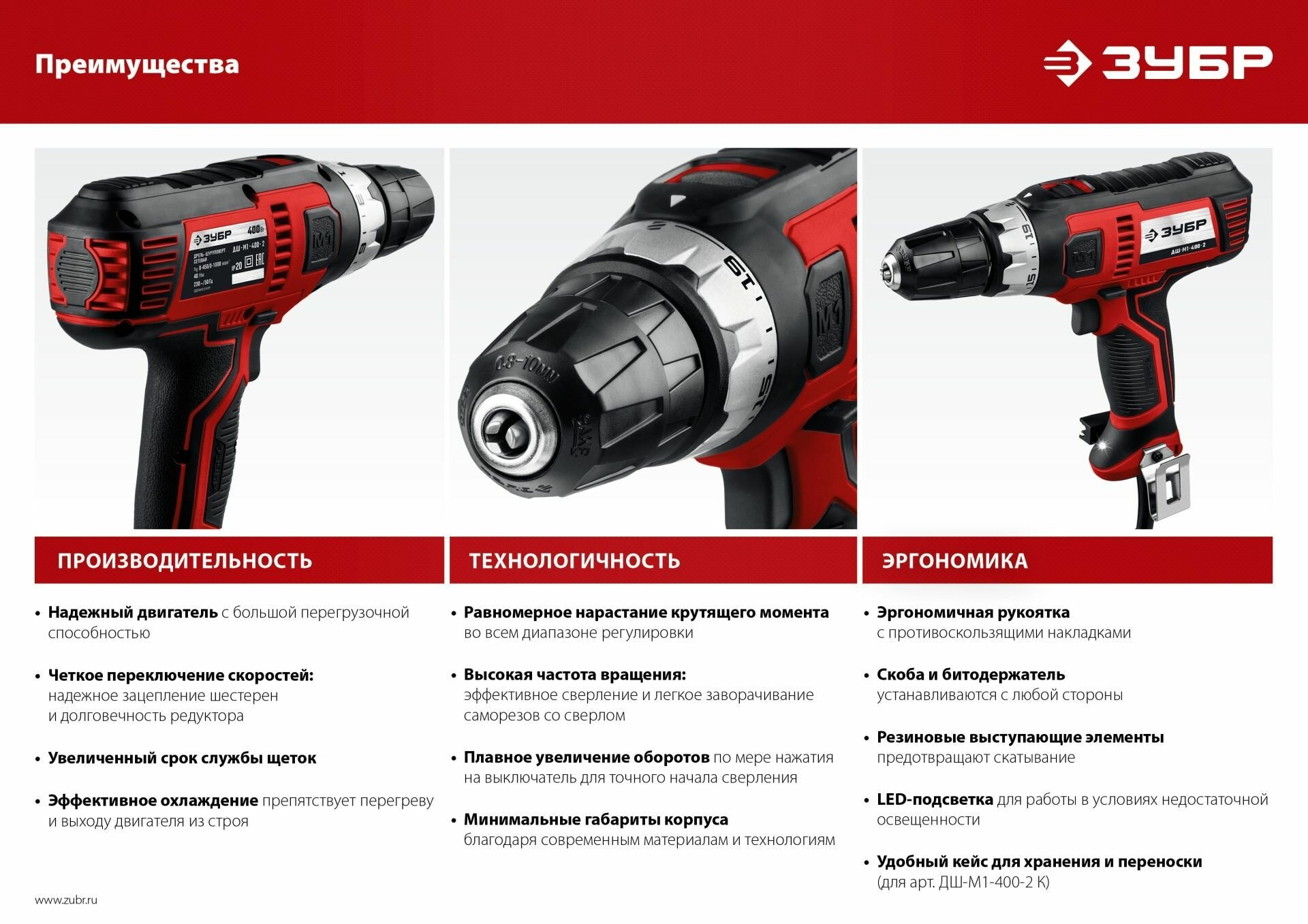 ABC Дрель-шуруповёрт Зубр ДШ-М1-400-2 (220В, 400Вт, 450/1800об./мин., бесключевой)