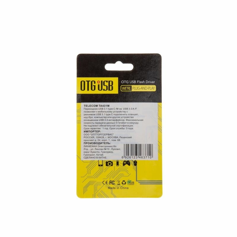 Переходник Telecom Переходник OTG USB 3.1 Type-C<->USB 3.0 Telecom TA431M (ret)
