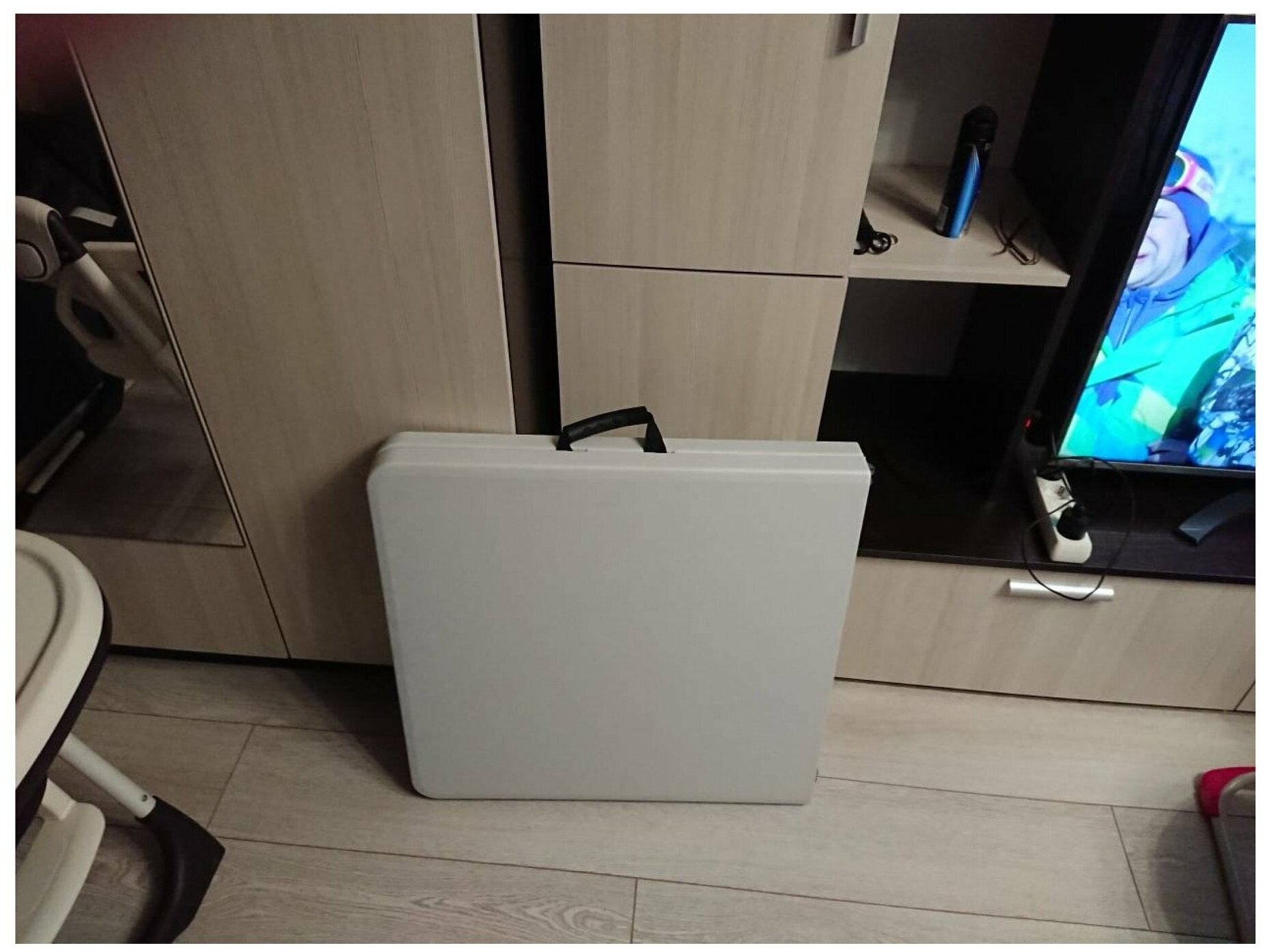 | Плюсы: | Добротно собран, хороший материал ножек. Удобная ручка для переноски. |