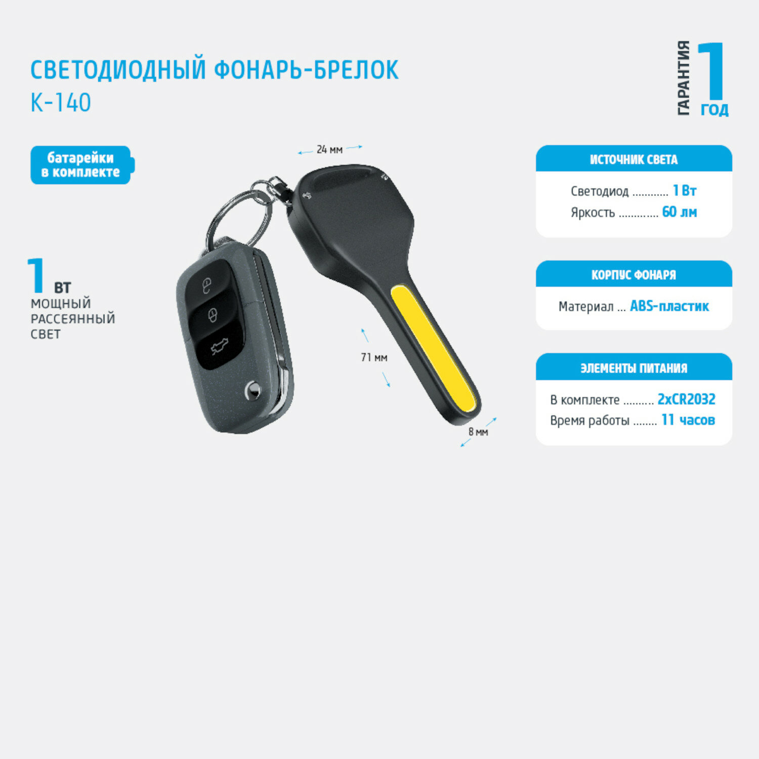 Светодиодный фонарь-брелок фотон K-140