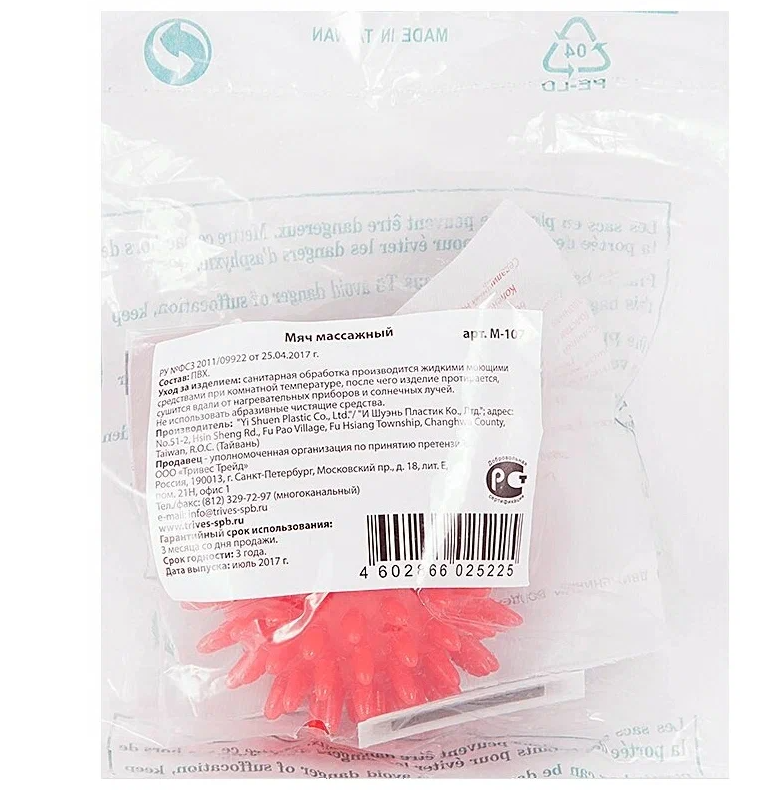 Массажный игольчатый мяч (диаметр 7 см) Тривес М-107 интересное: