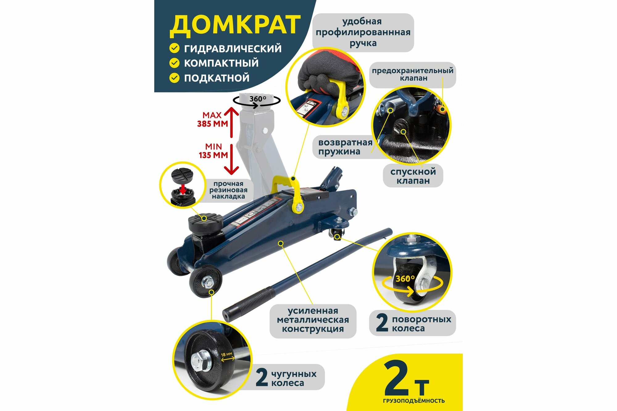 Домкрат подкатной 2 т, (h min 135 мм, h max 385 мм)