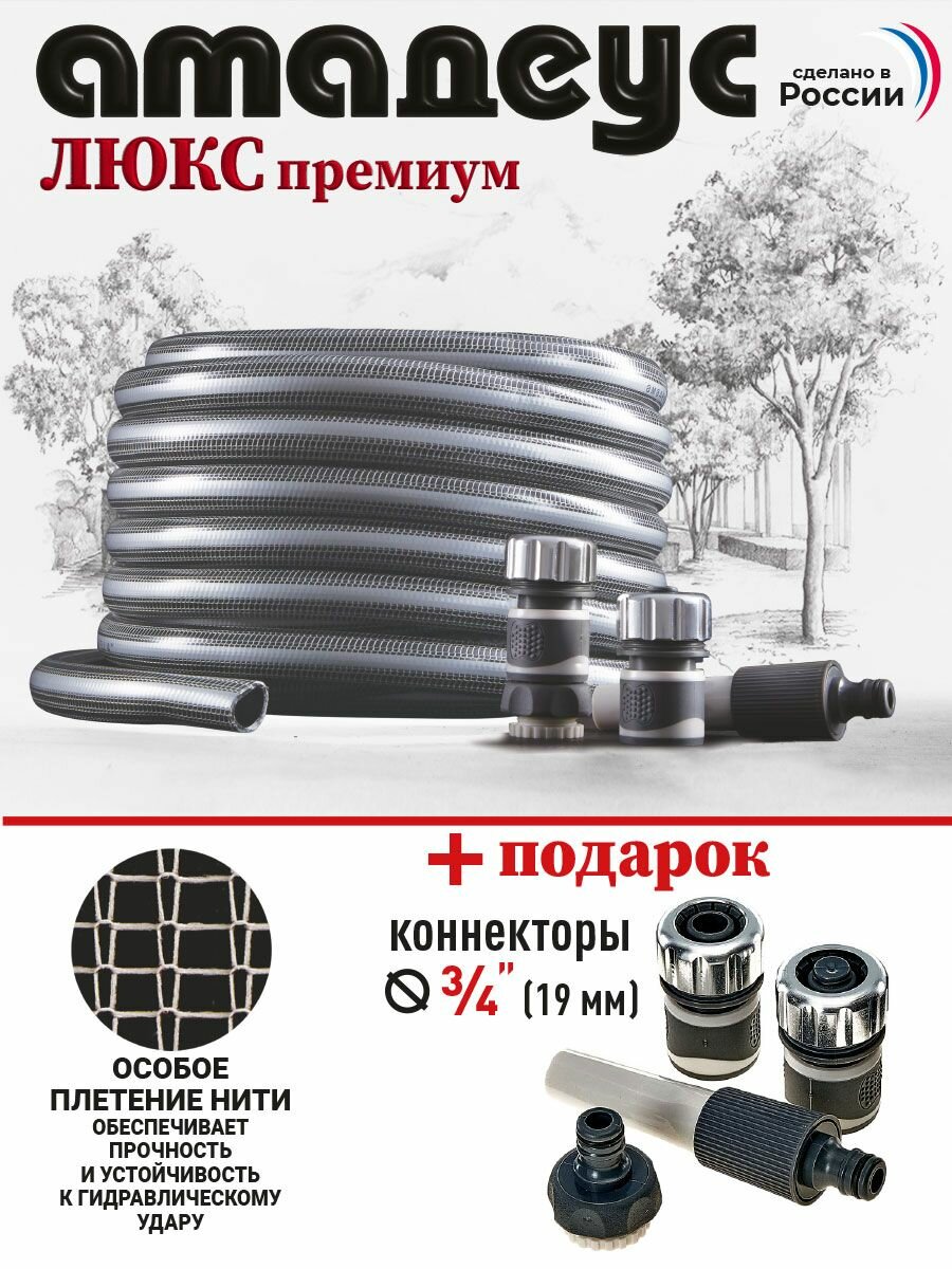 Купить Шланг Поливочный 3/4 Дюйма, 20 М, Армированный, 3-Х Слойный Гидроагрегат Амадеус Люкс Премиум (Набор Коннекторов В Подарок)