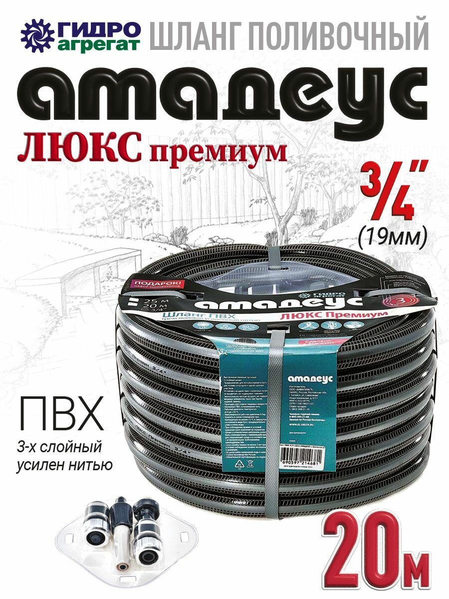 Шланг поливочный, 3/4 '', 20 м, 6 атм, армированный, Гидроагрегат, Амадеус Люкс Премиум, ПВХ