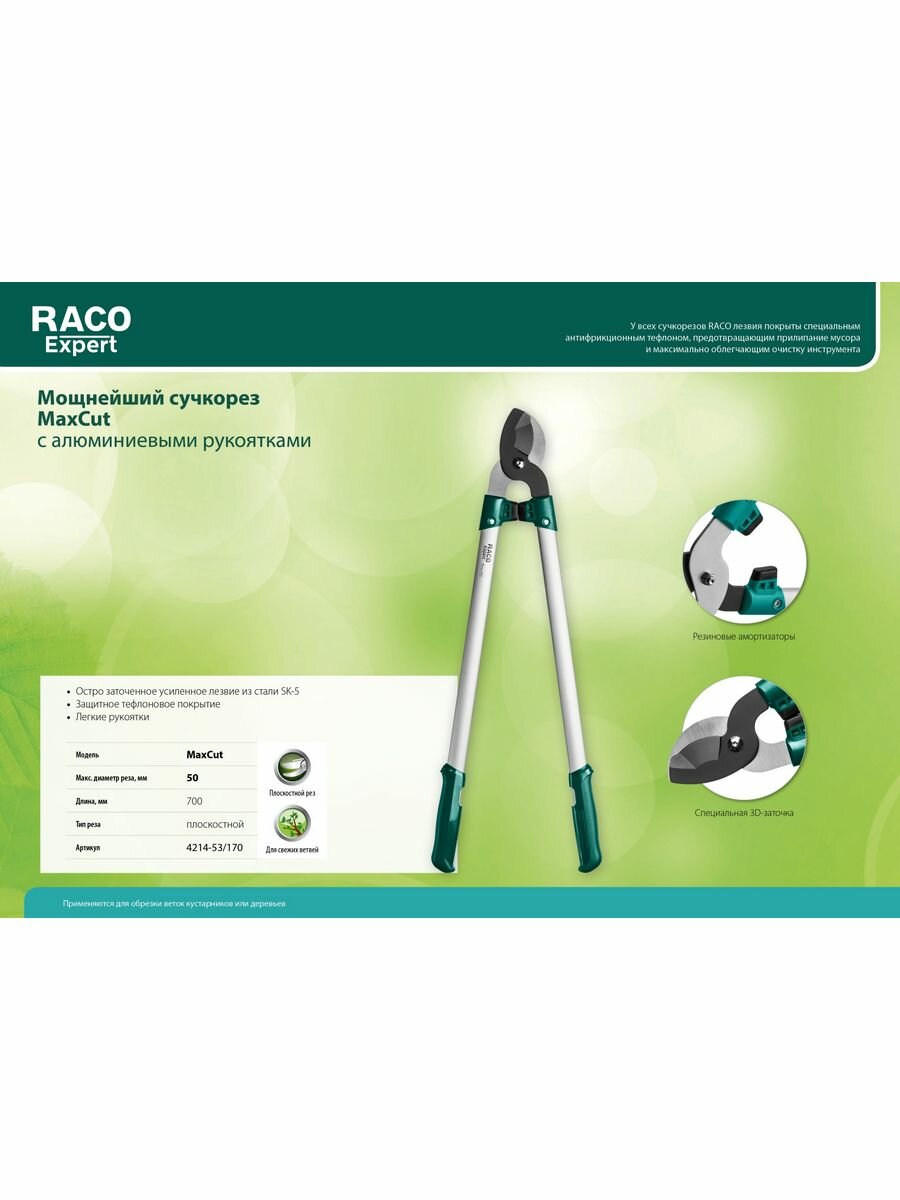 Сучкорез Raco MaxCut 4214-53/170 с усиленным лезвием, с алюминиевыми рукоятками 4214-53/170 .
