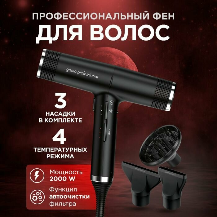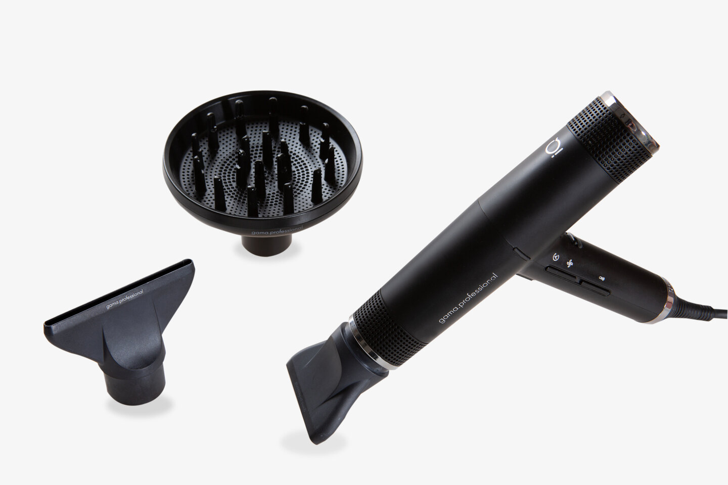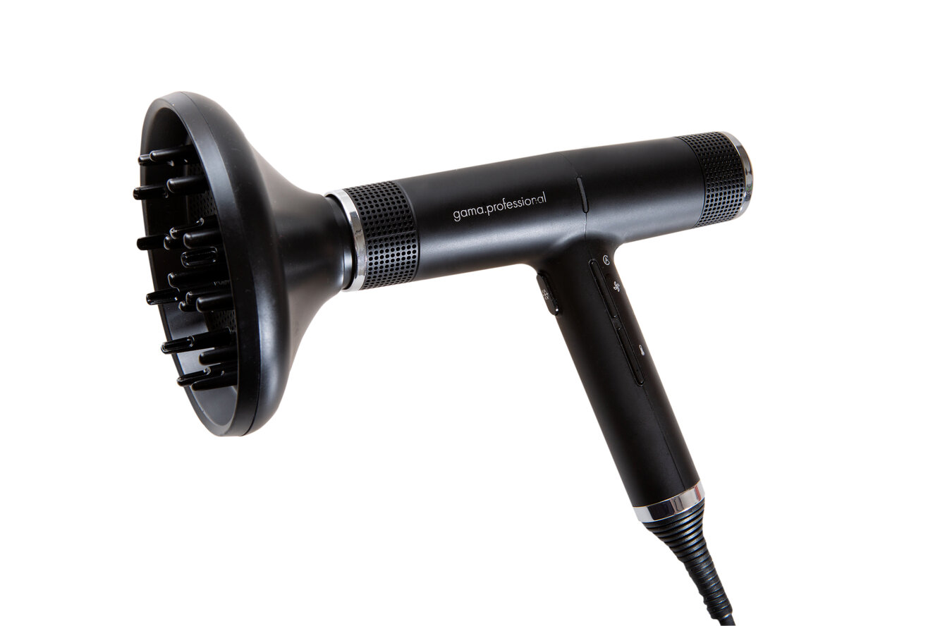 Фен для волос GA.MA IQ Perfetto мощность 1600 Вт, с ионизацией. С насадками диффузор и концентраторами. Черный