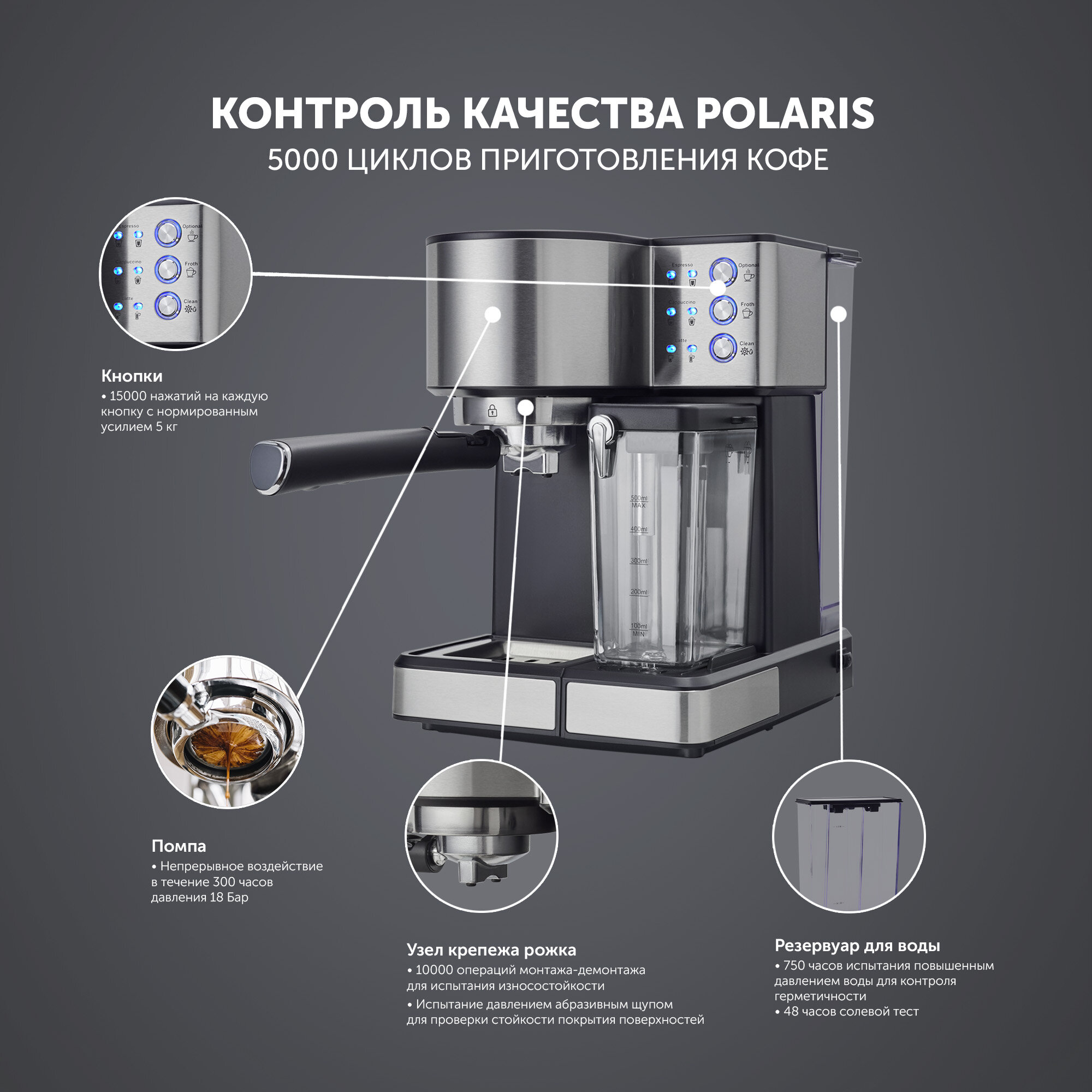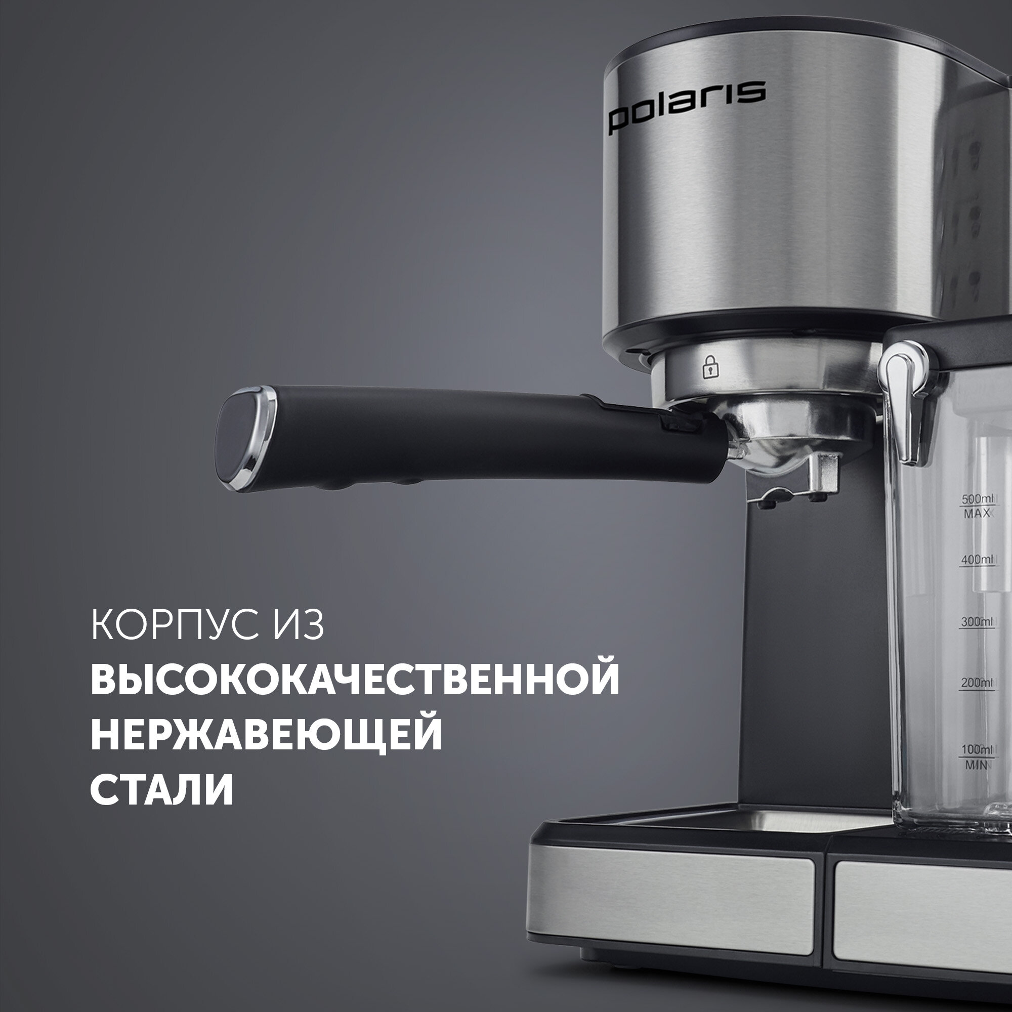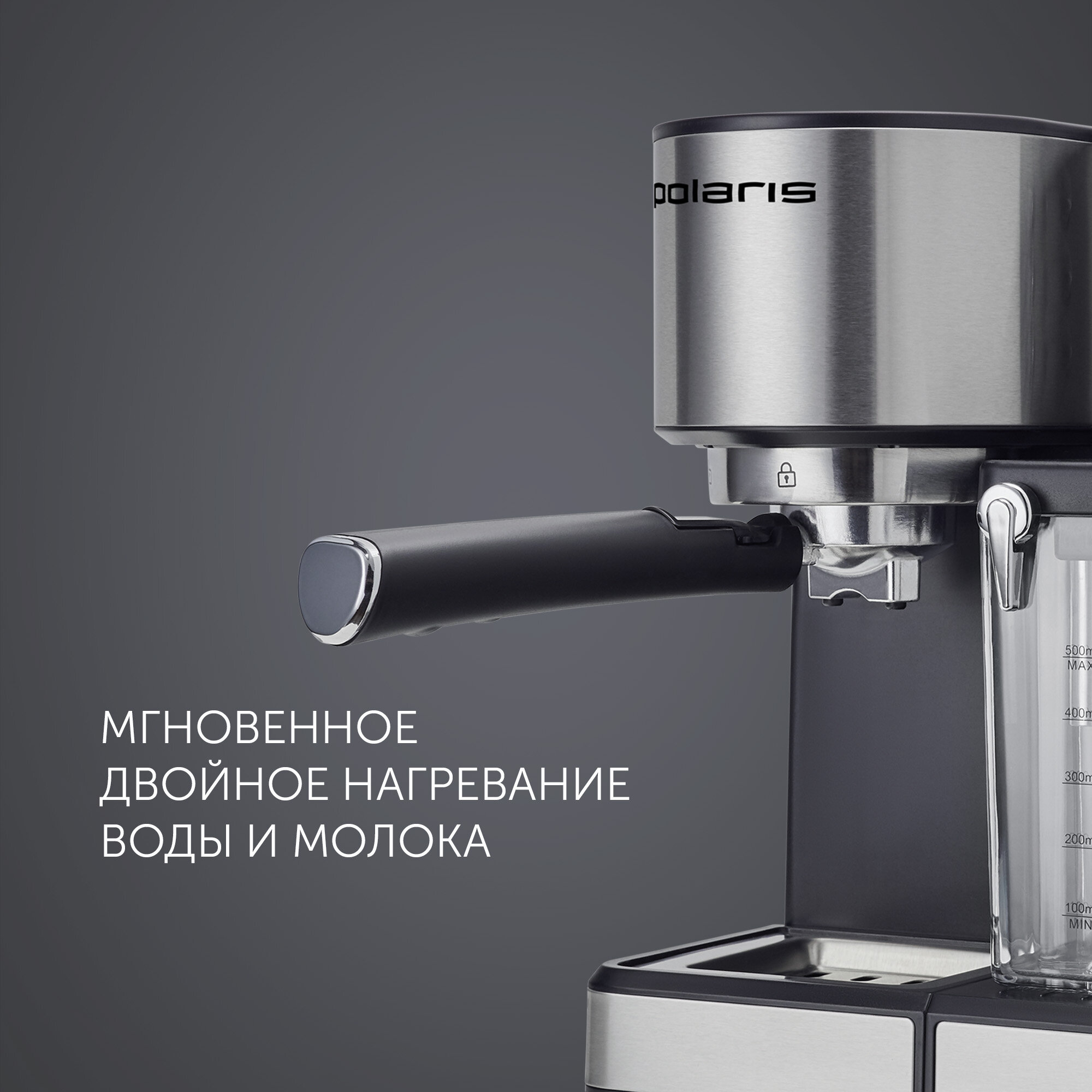Кофеварка рожковая POLARIS PCM 1536E, 1350 Вт, объем 1,8 л, 15 бар, автокапучинатор, черная, 45727