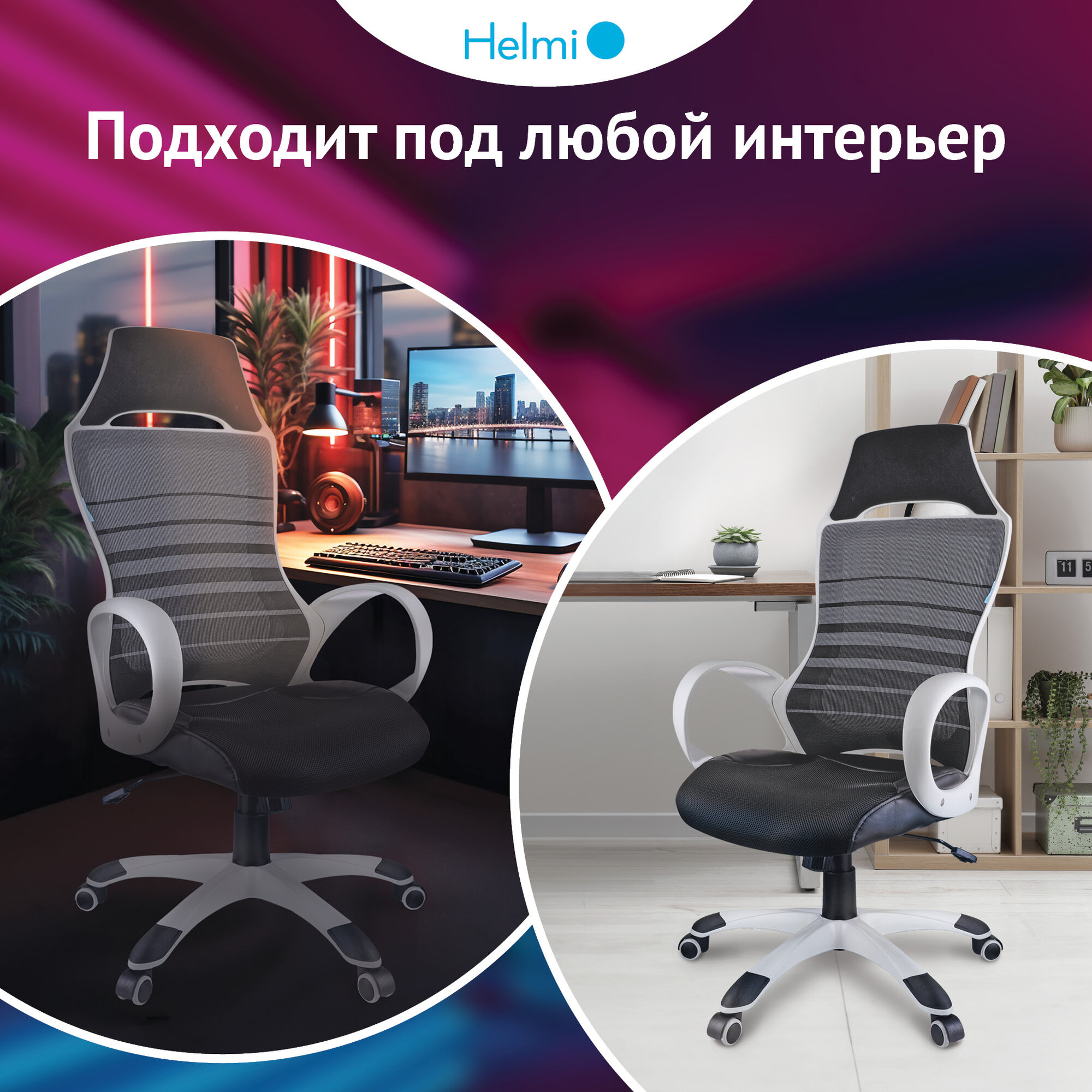 Кресло игровое Helmi "Podium", ткань сетка, экокожа черная, пластик черный (274811)