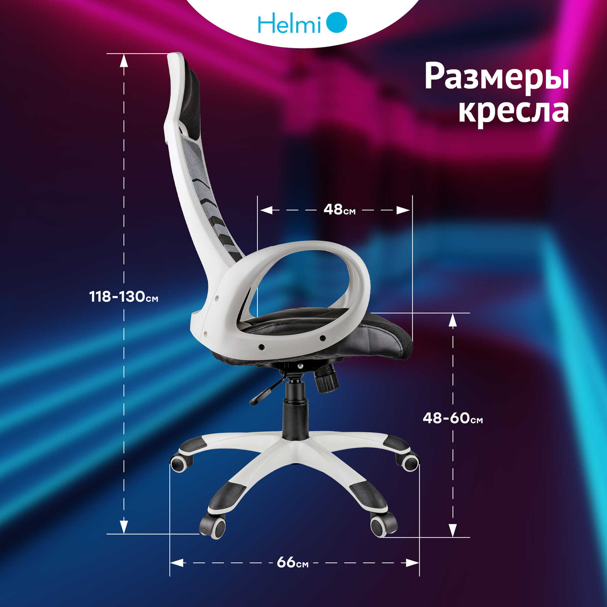 Кресло игровое Helmi "Podium", ткань сетка, экокожа черная, пластик белый (274810)