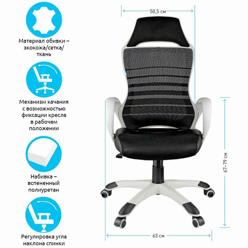 Компьютерное игровое геймерское офисное кресло (стул) с подлокотниками Helmi HL-S05 "Podium", ткань/сетка/экокожа черная, пластик белый
