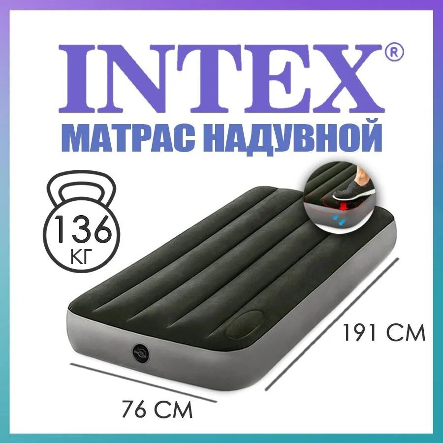 Матрас надувной Intex, 191х76х25 см, 64760, насос встроенный, ножной, 136 кг